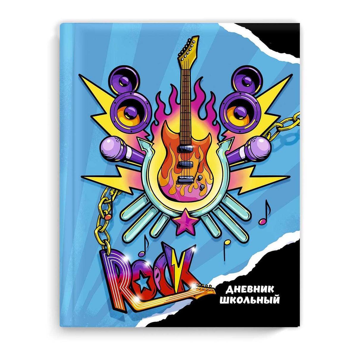 Дневник школьный А5+ 48л. «Электрогитара», твёрдая обложка, матовая ламинация, дизайн с микрофоном и аудиосистемами