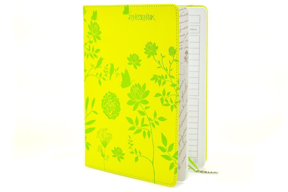Яркий принт с бабочками и растительным орнаментом выделит дневник среди обычных тетрадей. Светло-зеленый фон обложки сочетается со школьной атрибутикой, сохраняя деловой стиль. Особенности конструкции: