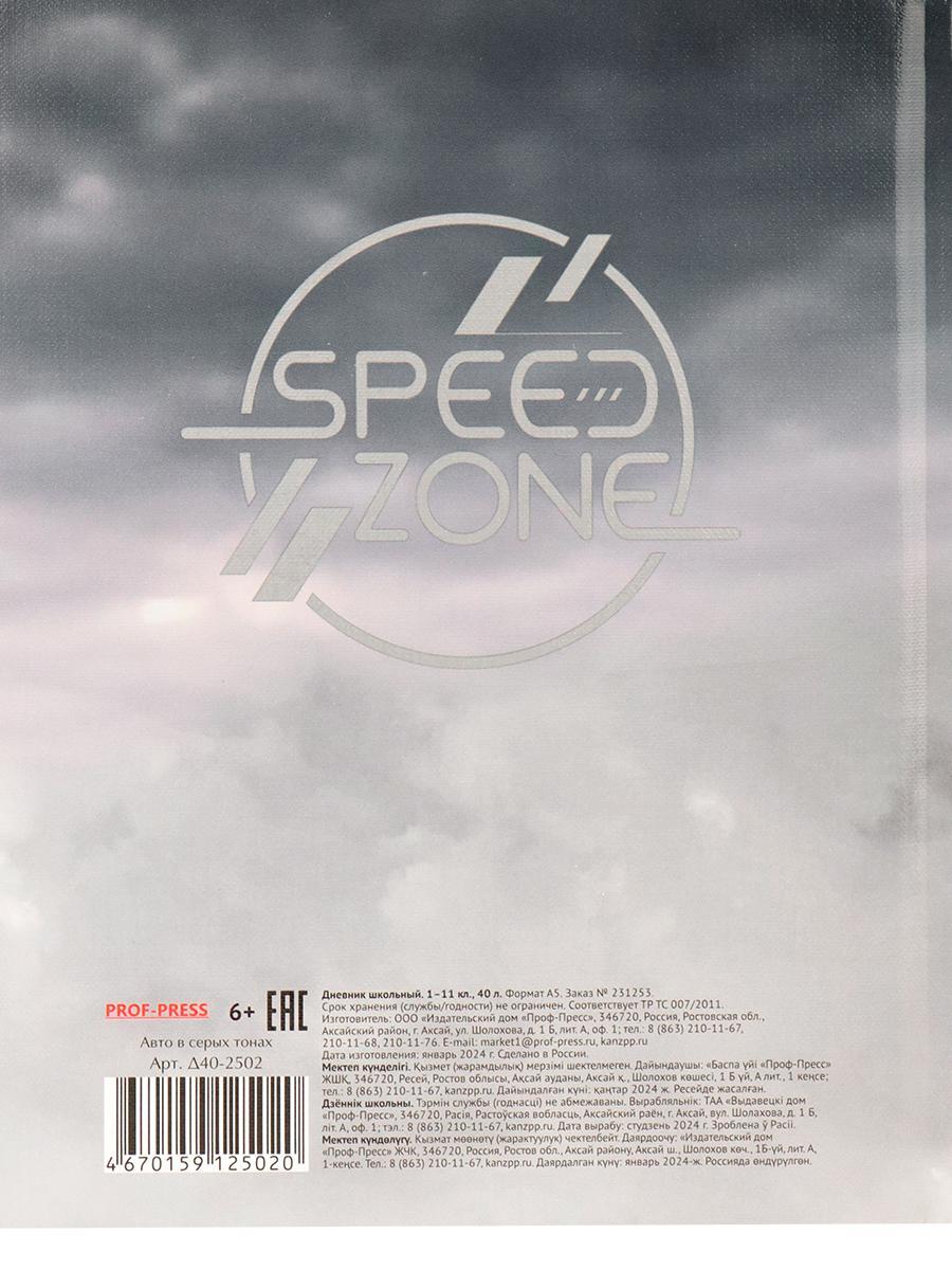 Дневник школьный "Speed Zone", 40 листов, 1-11 класс, серый автомобиль