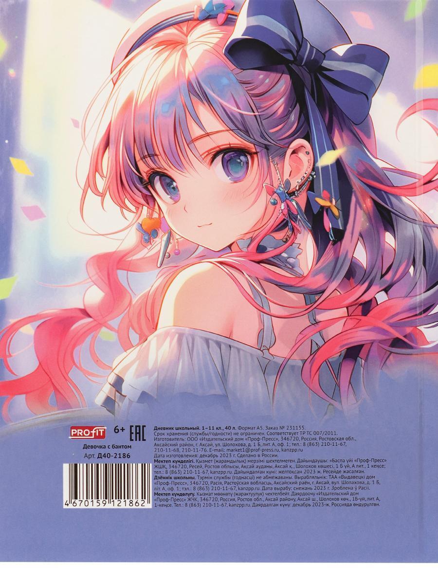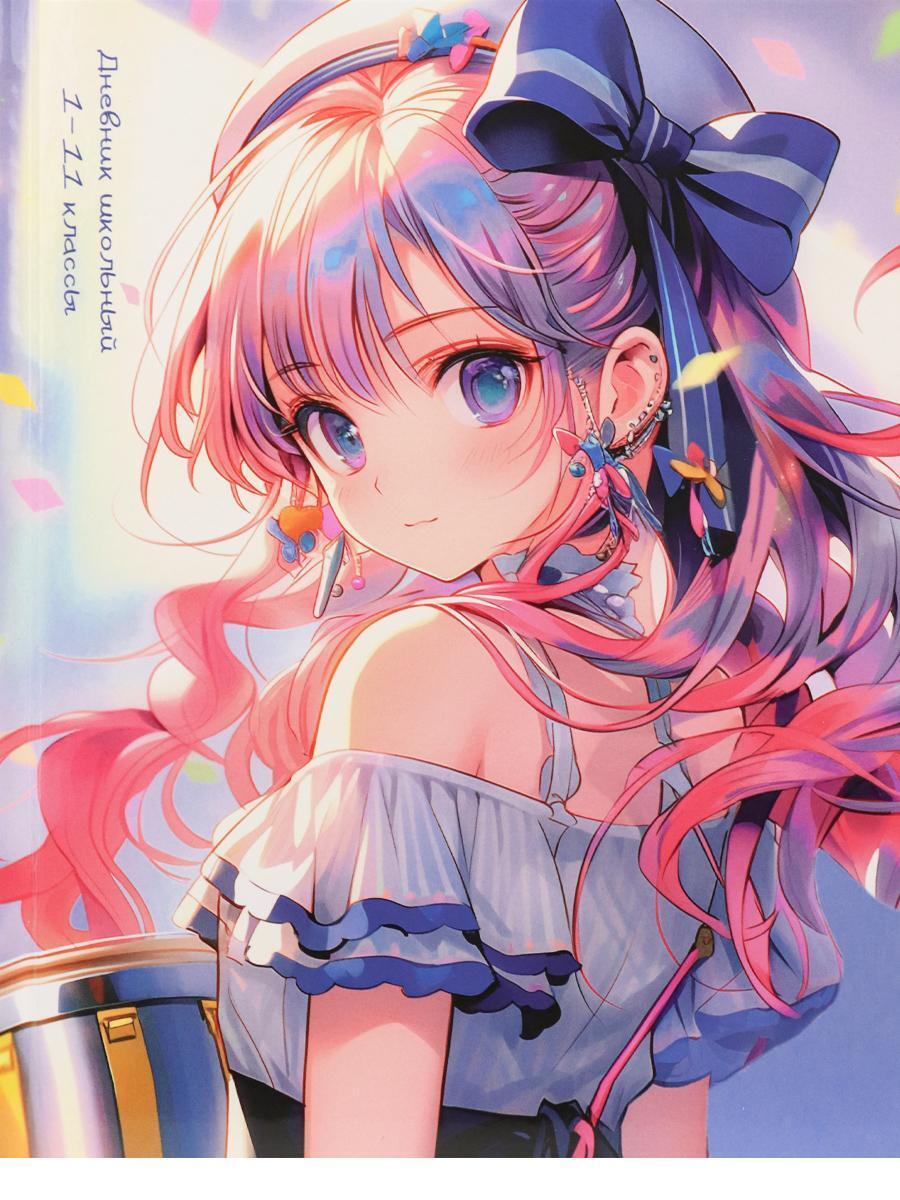 Погрузитесь в мир аниме с этим очаровательным школьным дневником! Обложка с красочной иллюстрацией девочки с бантом вдохновит на новые свершения и учебу с удовольствием. Идеальный выбор для учеников 1-11 классов, которые ценят оригинальность и стиль.