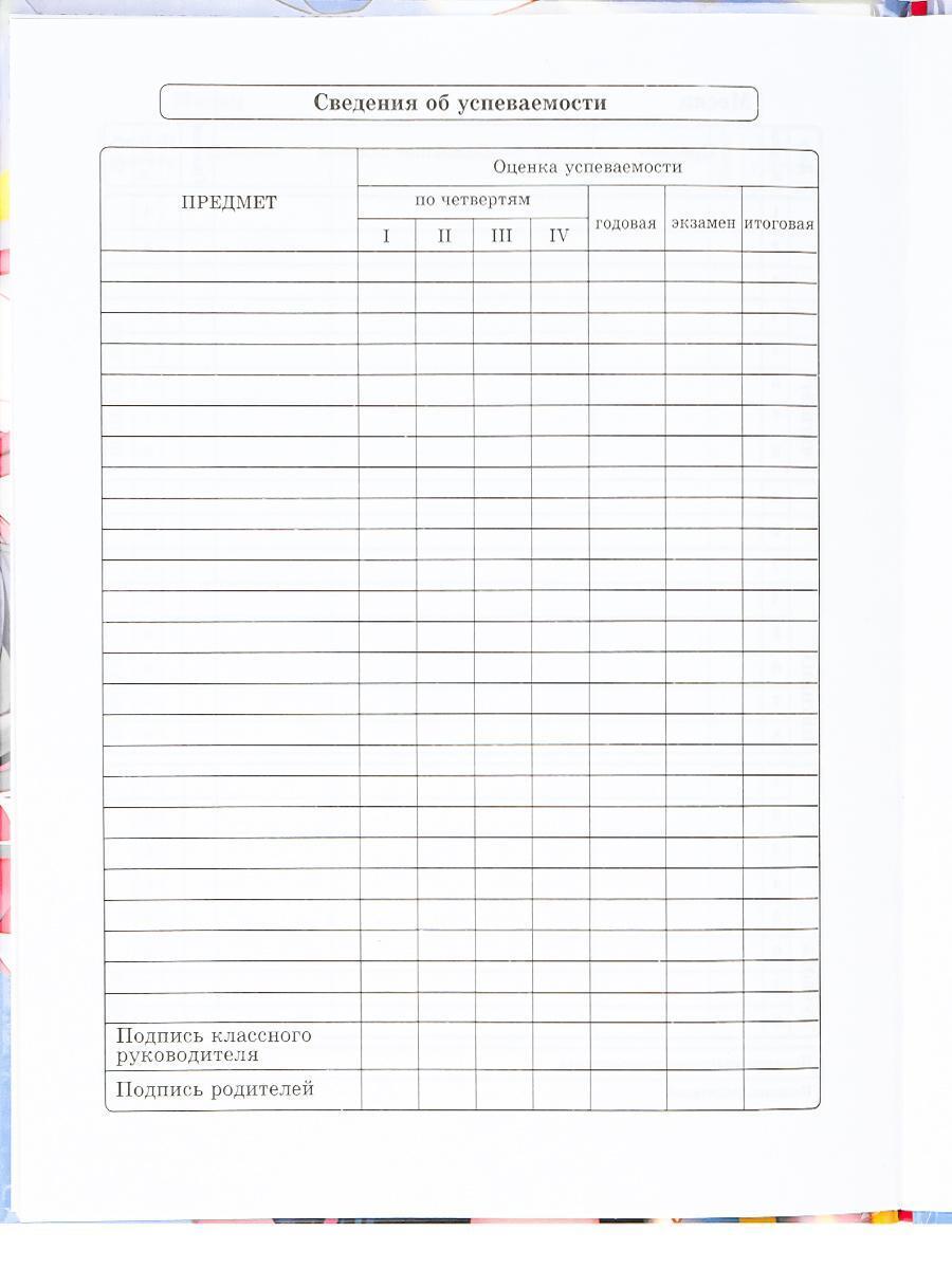 - Таблица успеваемости по четвертям