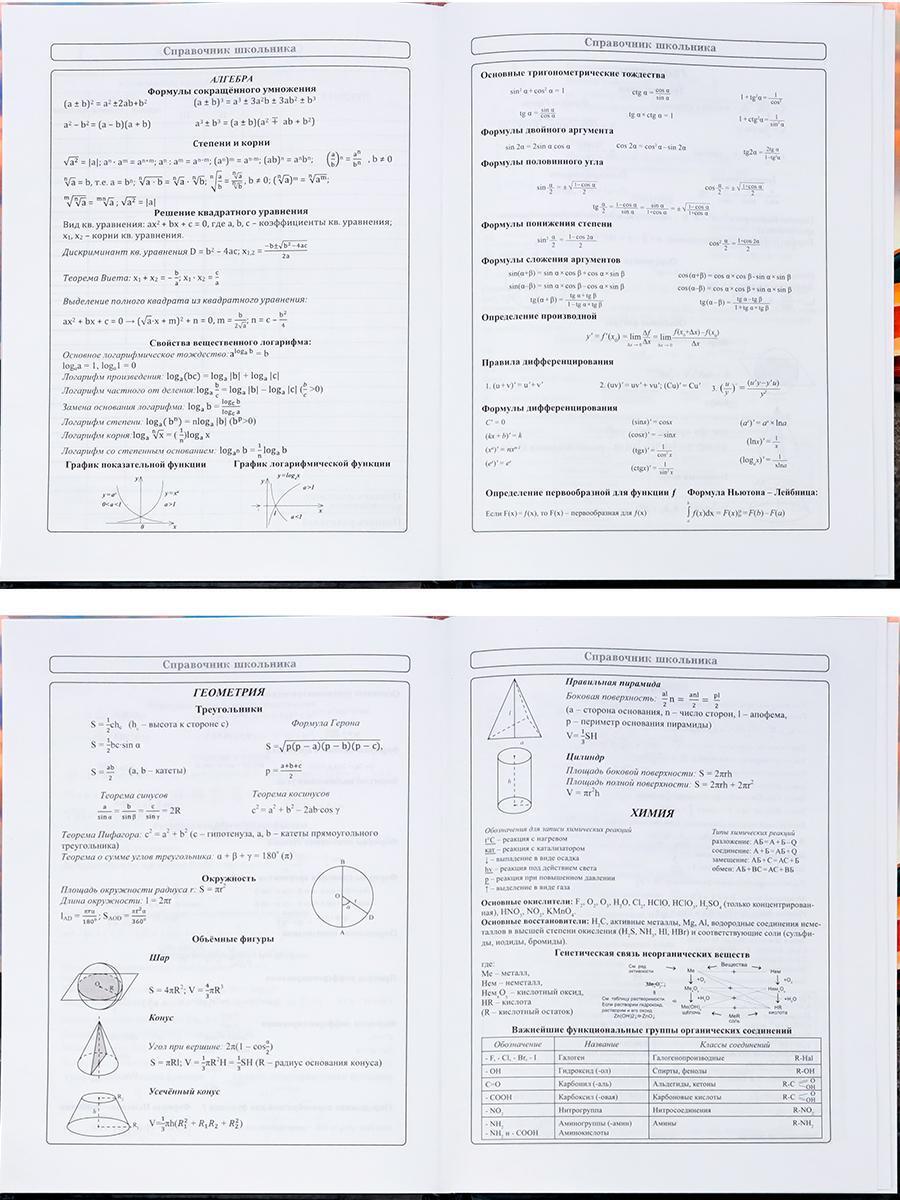 - Справочник с формулами по алгебре, геометрии и химии