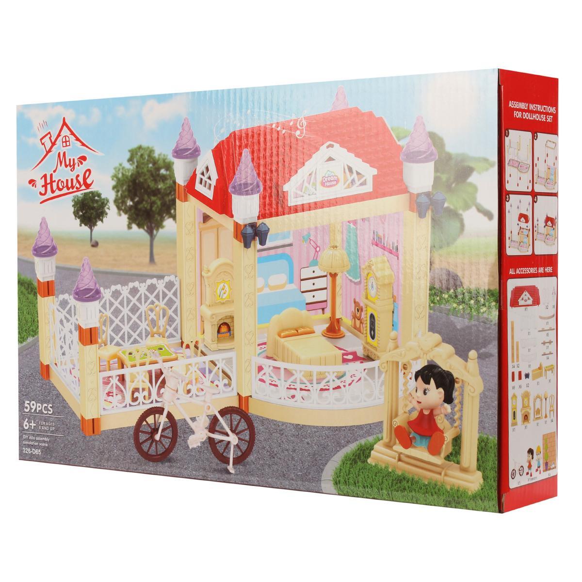 Этот удивительный дом для кукол станет настоящей находкой для вашей маленькой принцессы. Он сочетает в себе все необходимые атрибуты для увлекательной игры и творчества. С ярким дизайном и множеством деталей, этот домик гарантирует часы веселья и радости. В комплект входят 59 деталей, включая куколку, велосипед и качели, что позволяет создавать различные игровые сценарии.