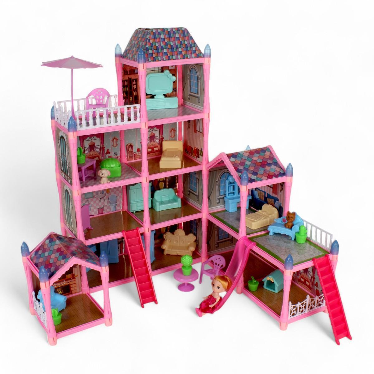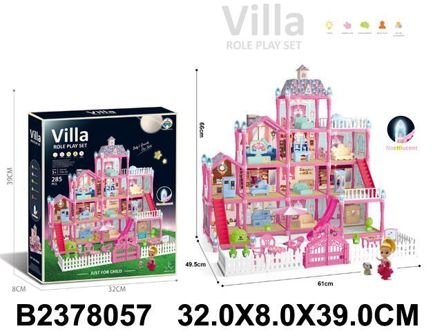 Дом для кукол 'Villa', 285 деталей, розовый/голубой, пластик, 61х49.5х66см