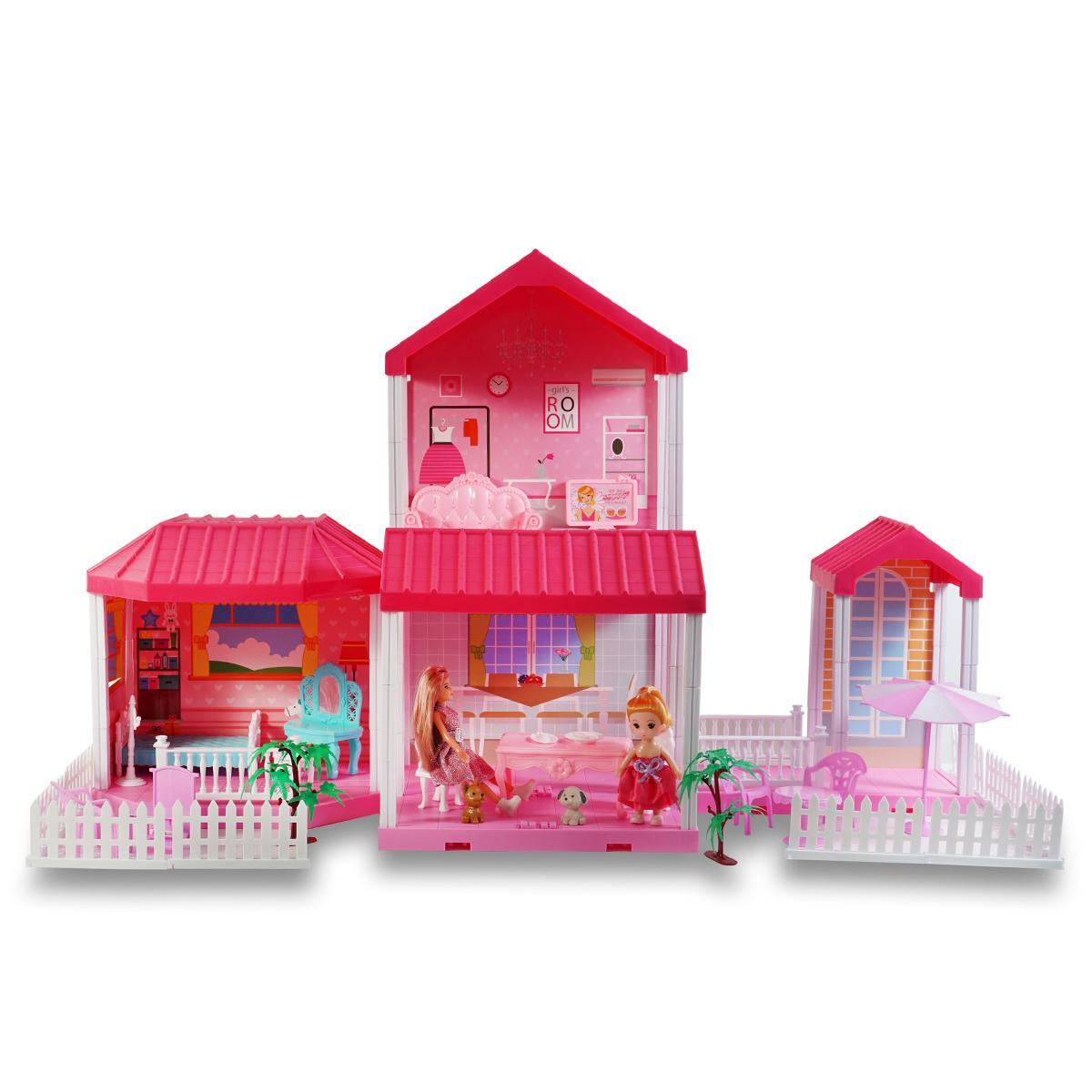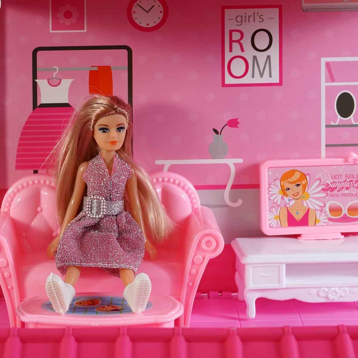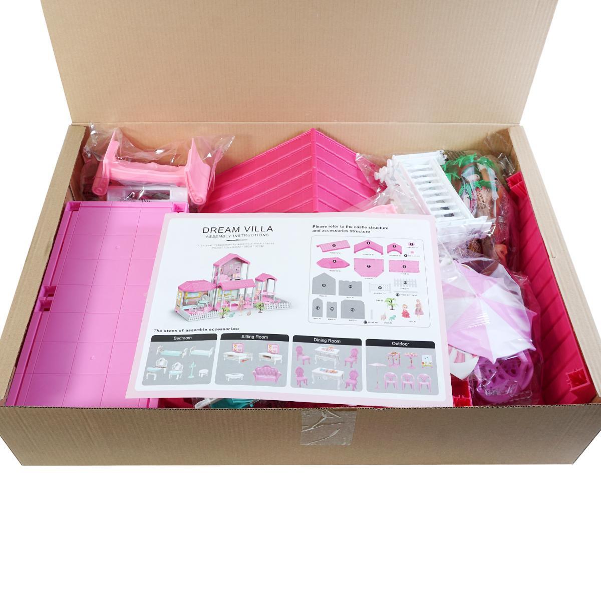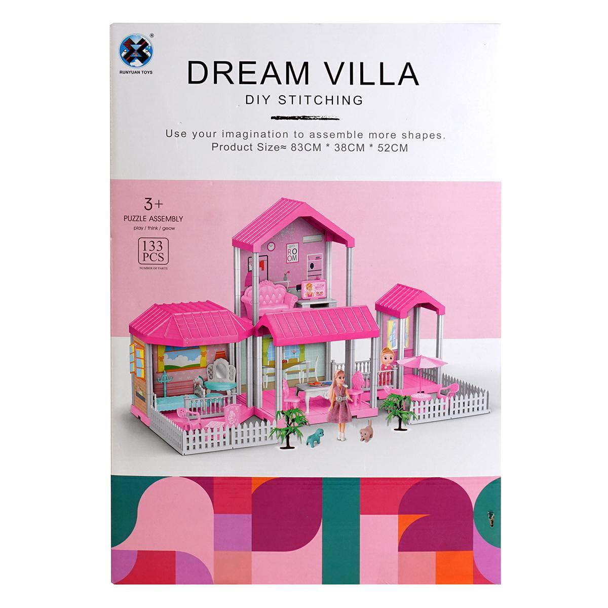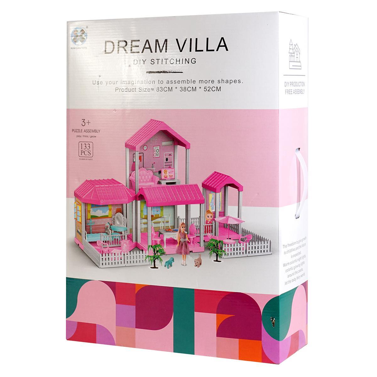 Дом для кукол "DREAM VILLA" с мебелью и куклой, 133 детали, сборка своими руками, 83х38х52 см