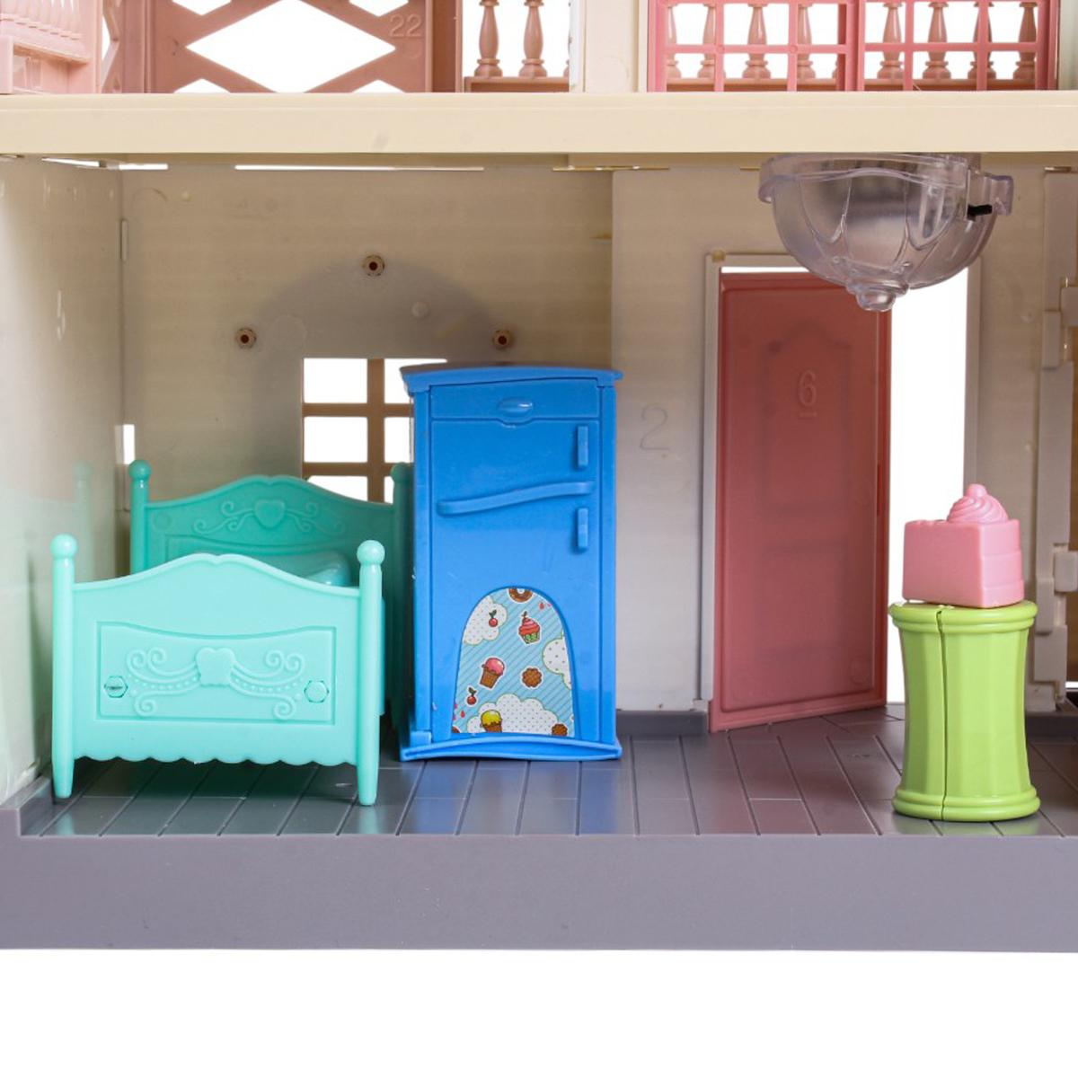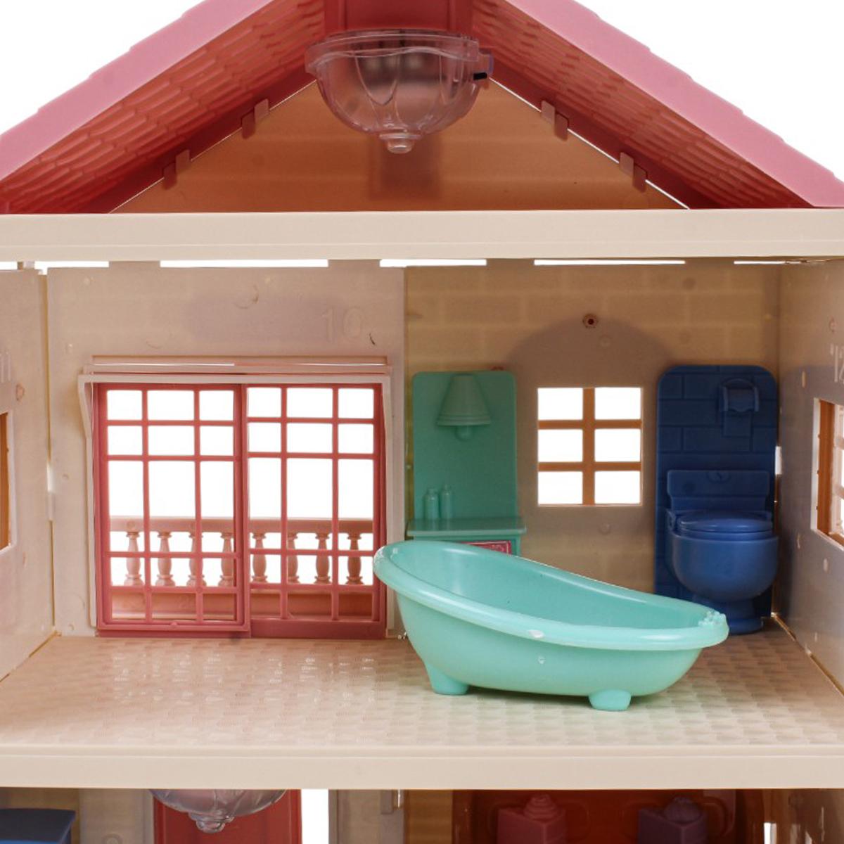 Этот просторный двухэтажный дом для кукол станет превосходным развлечением для девочек, которые любят придумывать свои истории. В комплект входит 85 деталей: мебель, аксессуары, фигурки и интерьерные элементы, позволяющие обустроить разные комнаты по желанию. Простая сборка и реалистичный дизайн делают игру увлекательной и творческой.