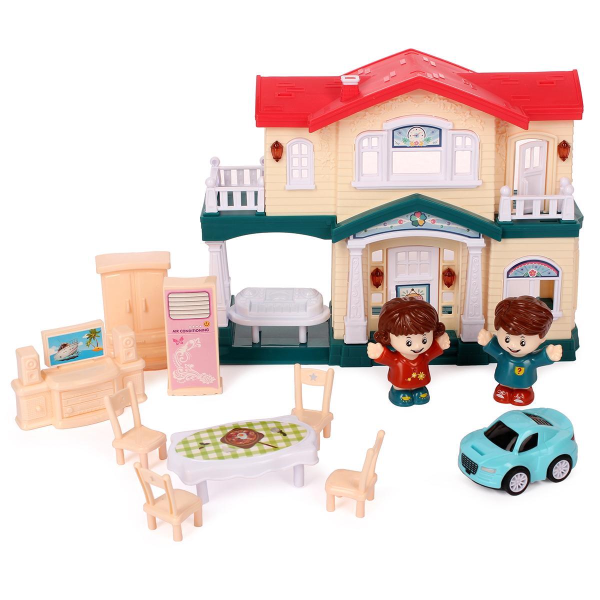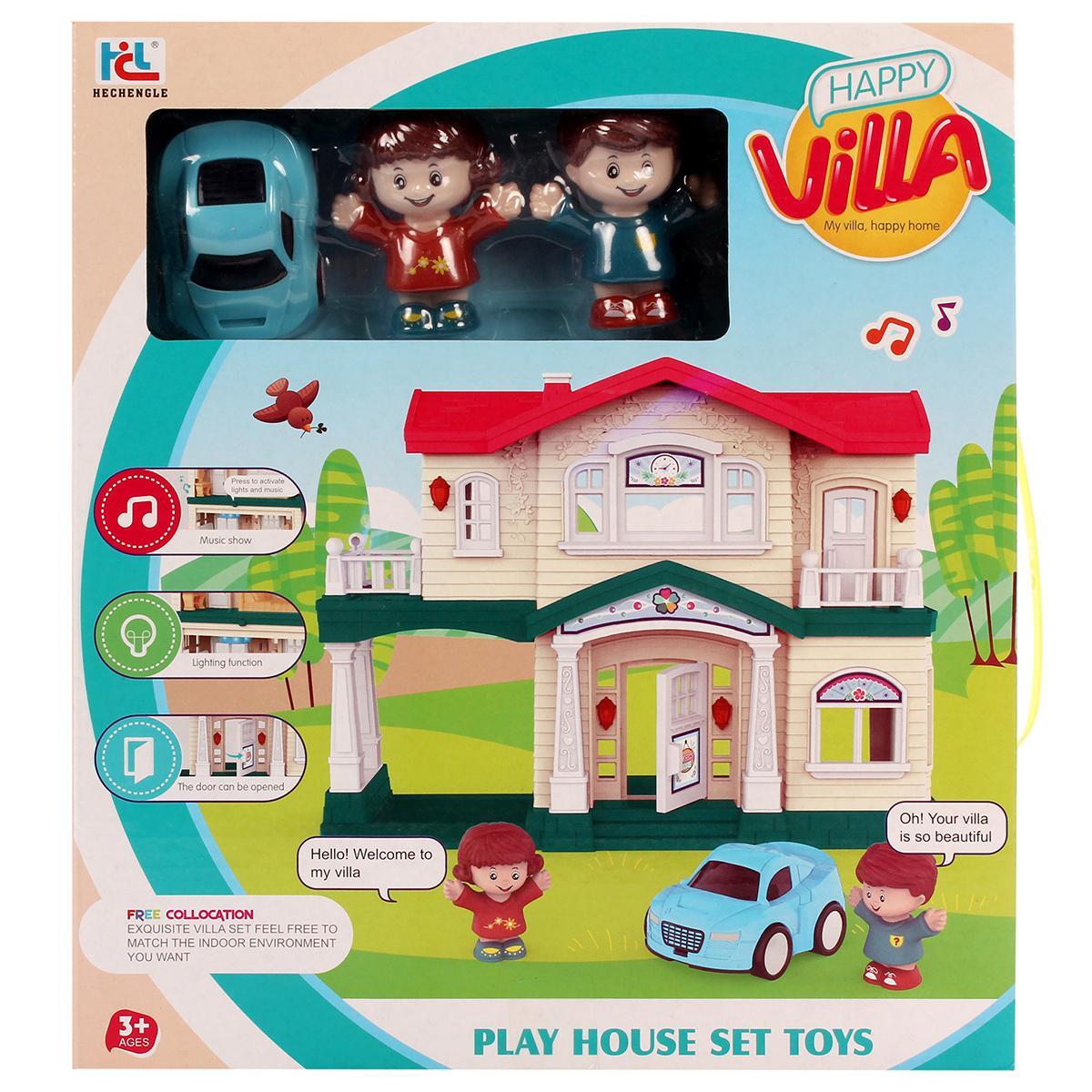 Дом для кукол "Счастливая Вилла" с фигурками и машиной, 2 этажа, световые эффекты, пластик