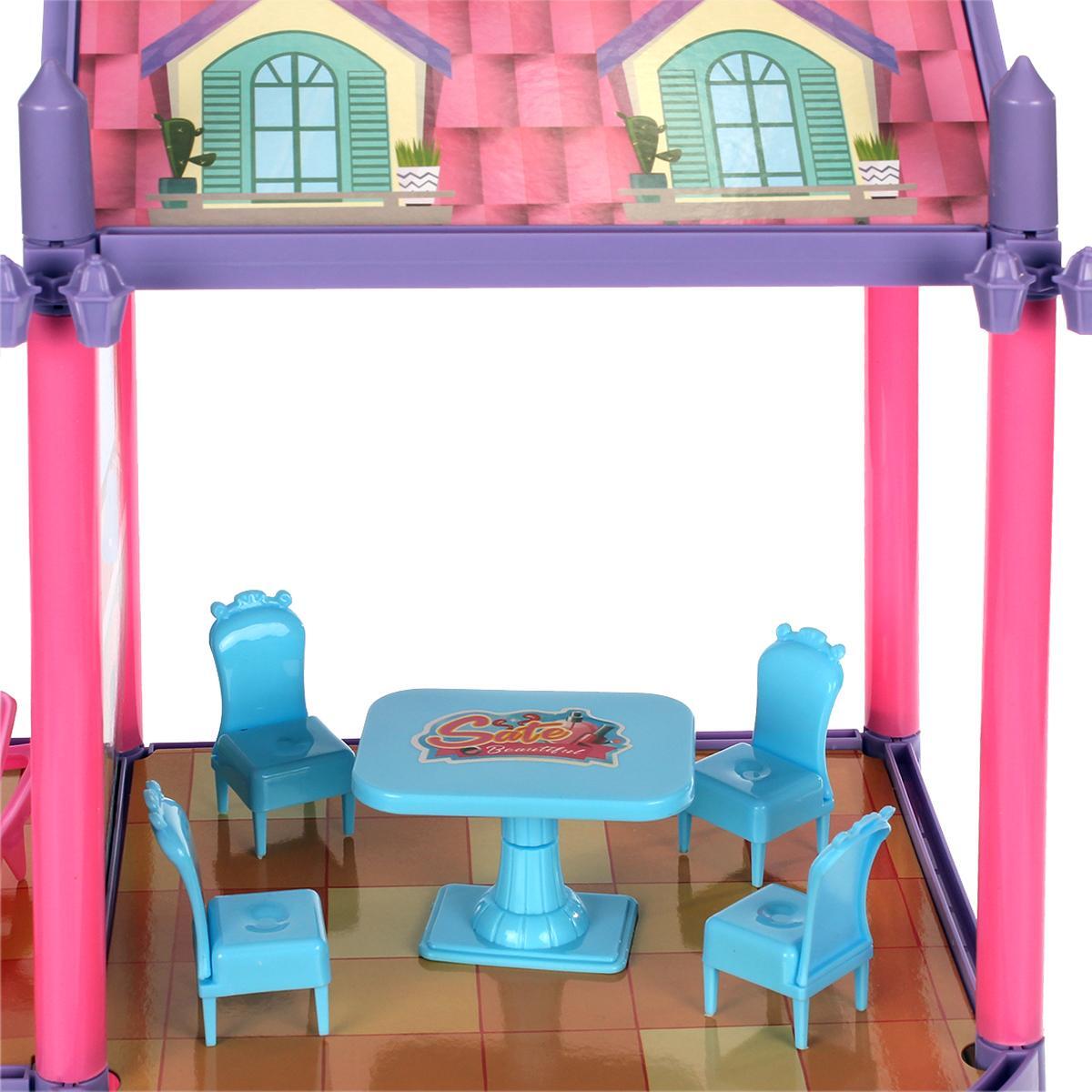 Размеры домашнего комплекса позволяют легко разместить его в любой комнате, а аккуратные детали и яркий дизайн делают его привлекательным для ребенка и удобным для родителей. Игра с этим домиком способствует развитию воображения, мелкой моторики рук и творческих навыков, делая каждый игровой момент увлекательным и полезным.