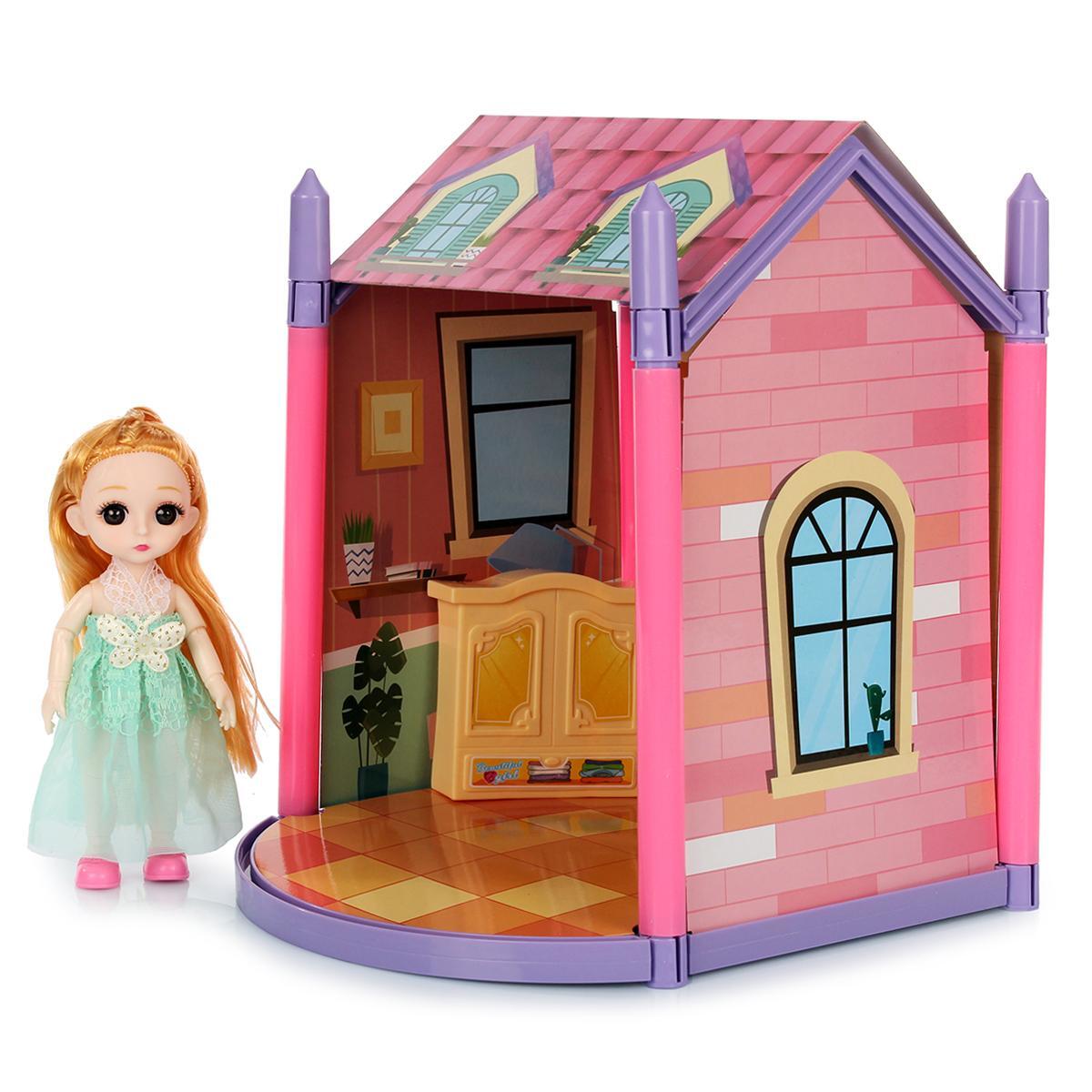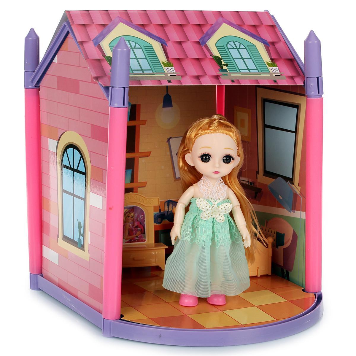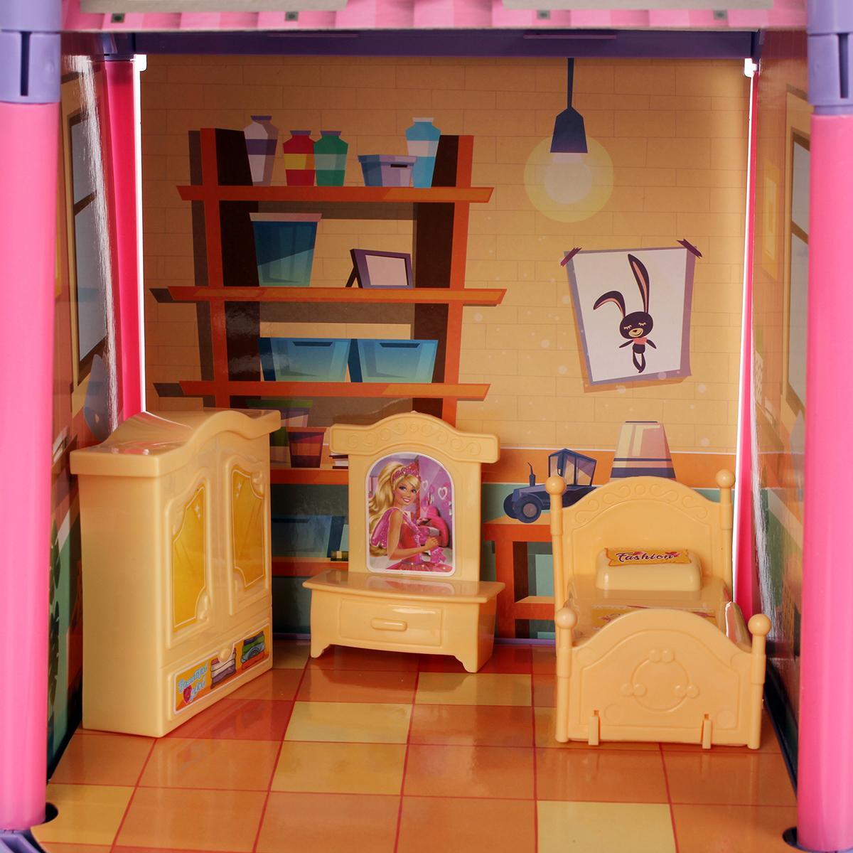 Кукольный домик с мебелью и куклой «ABL1013», 31 предмет, розово-голубая гамма, для детей от 3 лет
