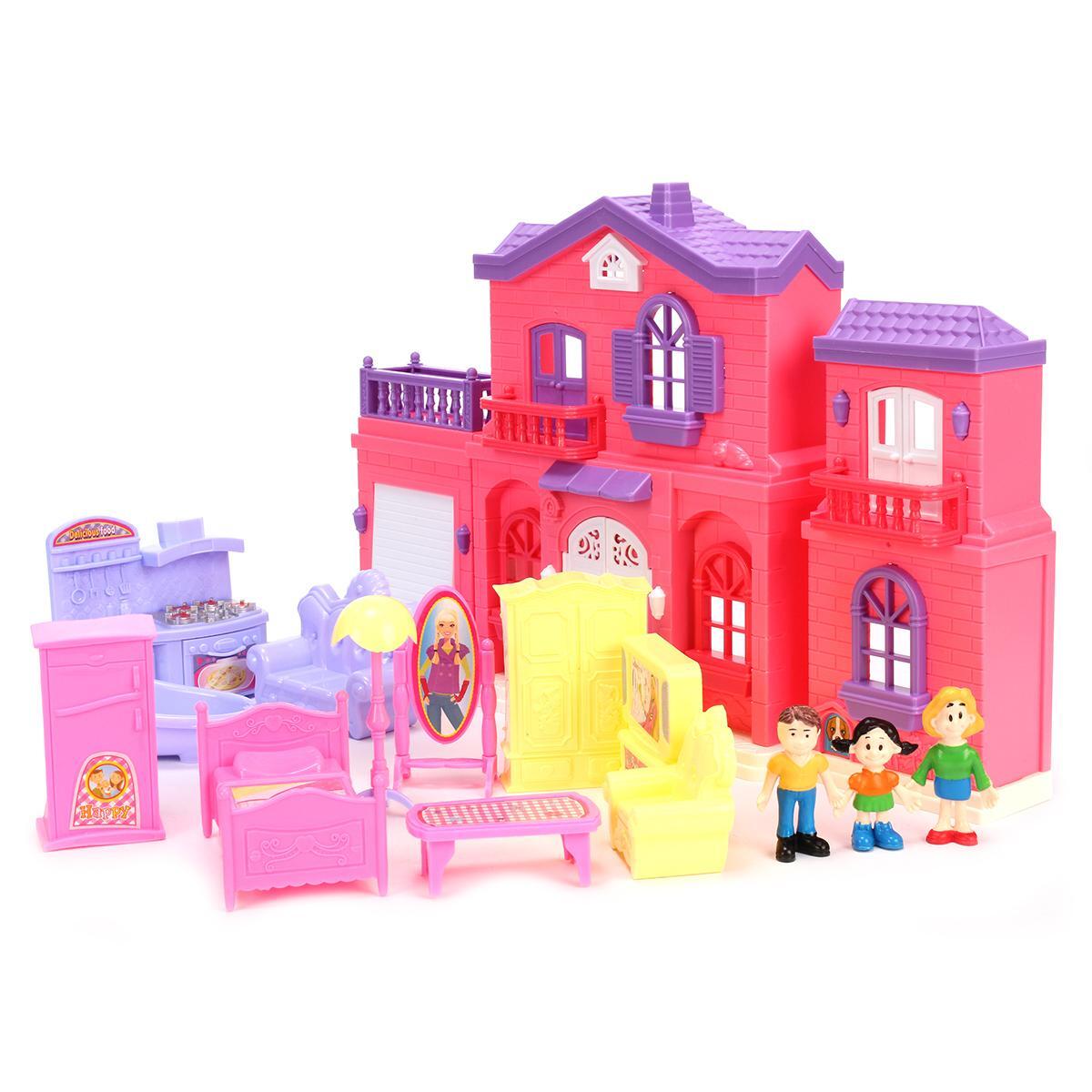 Кукольный домик «Happy Time» с мебелью и 3 фигурками, 2 этажа, розовый/фиолетовый, пластик
