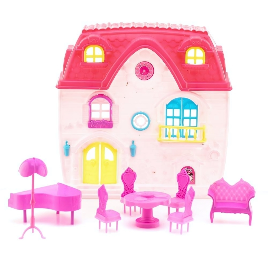 Все элементы выполнены из безопасного пластика без острых углов. Сочетание розовой мебели с многоцветным фасадом создает гармоничный ансамбль для сюжетно-ролевых игр. Размеры предметов оптимально подобраны для стандартных кукол высотой 15-20 см.