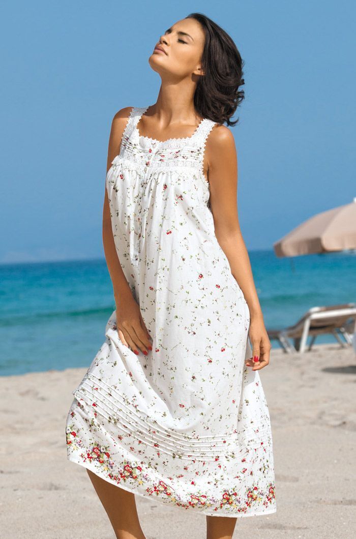 Платье подходит для домашнего ношения, а также для прогулок на свежем воздухе. Широкие кружевные бретели обеспечивают надежную поддержку и комфорт, а кокетка с функциональной планкой на перламутровых пуговицах добавляет нотку элегантности. Низ платья украшен кружевом и продольными защипами, что придает ему объем и текстуру.