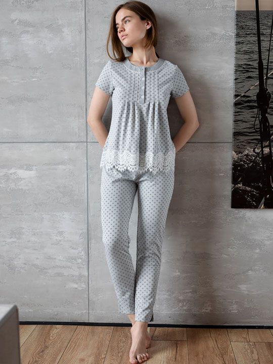 Представьте, как приятно провести вечер в этих мягких домашних брюках из коллекции Opium. Их элегантный серый цвет с тонким горошком добавит нотку изысканности даже в повседневную домашнюю обстановку.