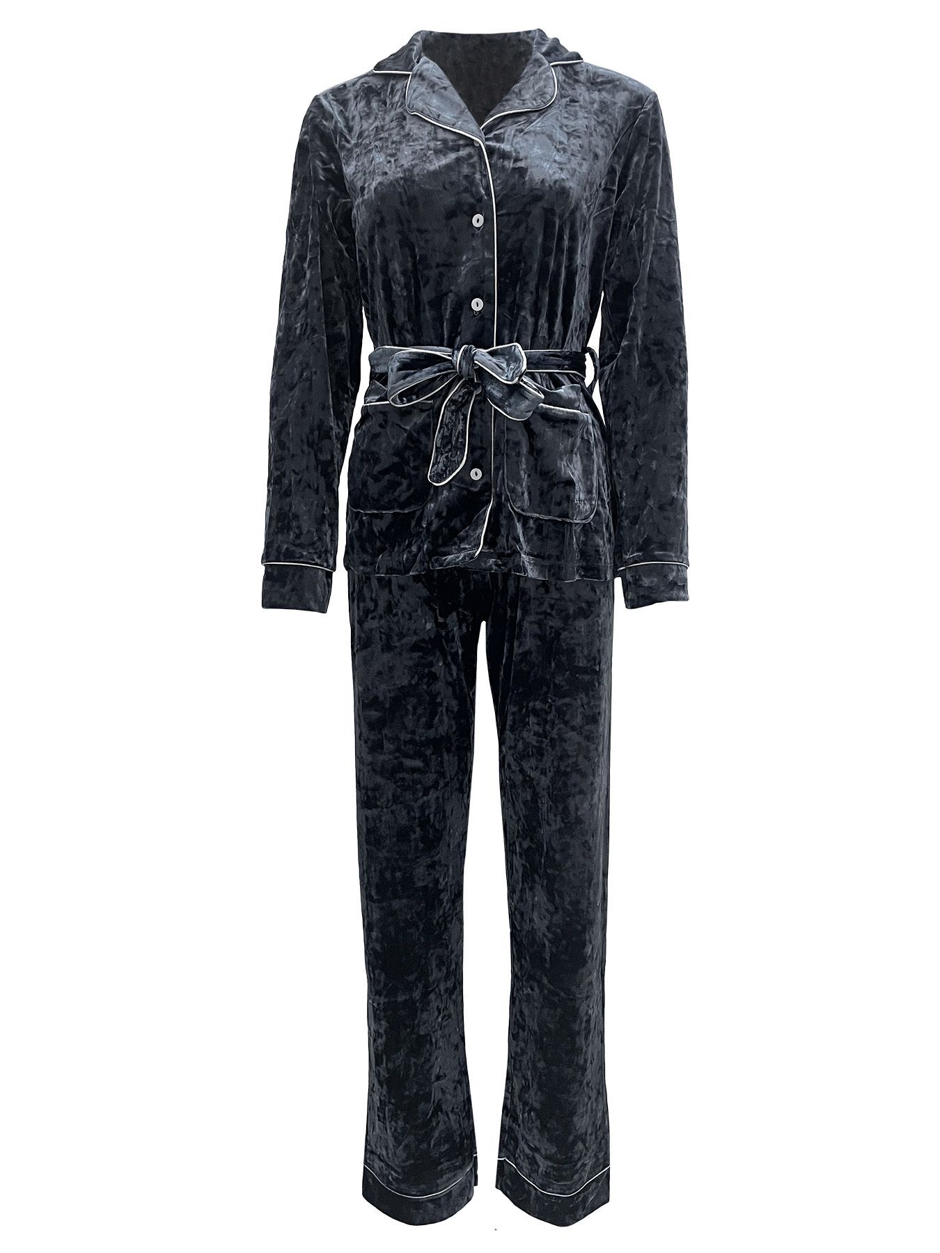 Погрузитесь в мир комфорта и стиля с нашим домашним бархатным костюмом. Этот костюм, выполненный из мягкого и приятного на ощупь материала, станет вашим идеальным спутником для отдыха дома. Насыщенный серый цвет с белым атласным кантом придаёт ему особую элегантность, а перламутровые пуговицы добавляют изысканности. Вы будете чувствовать себя уверенно и комфортно в любой обстановке.