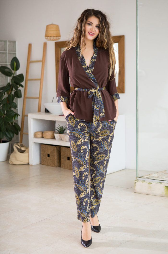 Выбирая комплект Elania, вы получаете не только стильный, но и практичный наряд. Вискоза, из которой он изготовлен, обладает отличными дышащими свойствами, что делает его идеальным для любого времени года. Кроме того, коричневый цвет с принтованными элементами добавляет изюминку в ваш гардероб, позволяя вам выглядеть стильно даже в домашней обстановке.