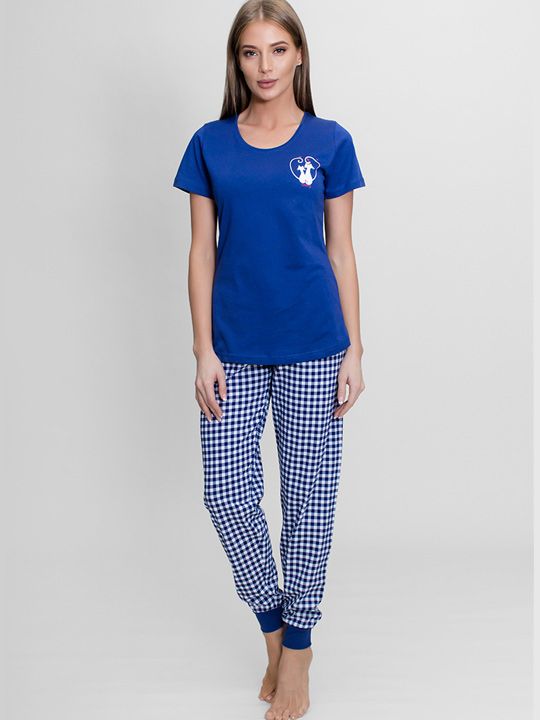 - Стильный дизайн: Классическая футболка с милым принтом в виде сердца с кошками гармонично сочетается с модными клетчатыми брюками.