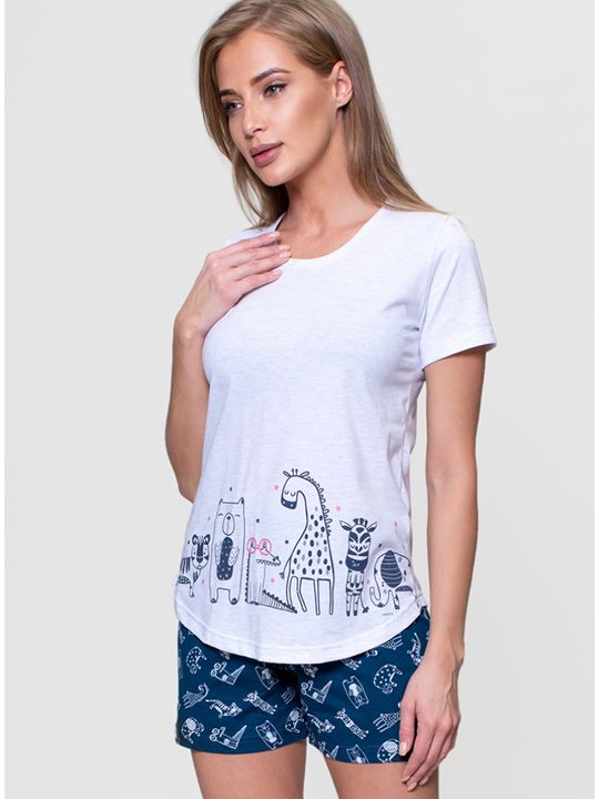 - Стильный дизайн: Футболка украшена оригинальным принтом со стилизованными животными, а шорты имеют аккуратный рисунок по всей поверхности, что делает комплект интересным и современным.
