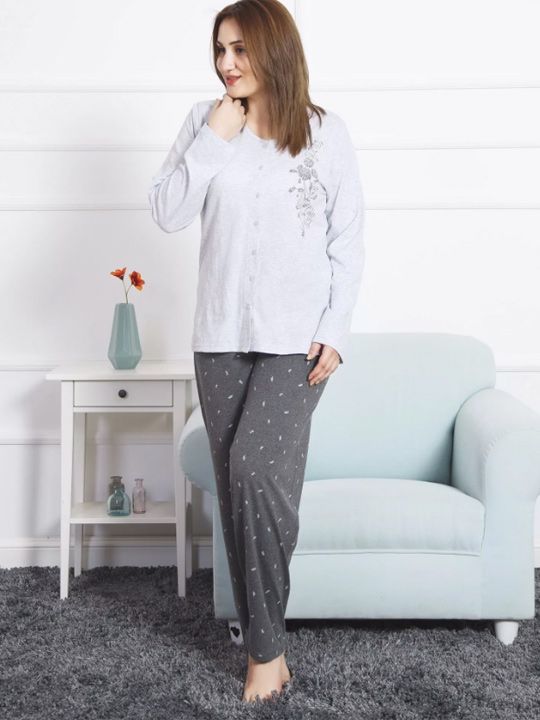 Домашний комплект "Vienetta" из хлопка, жакет на пуговицах и брюки, размер XXXL, светло-серый с серым