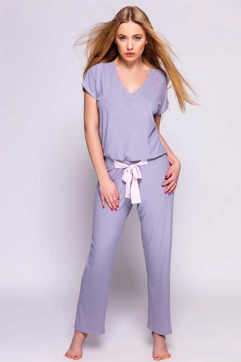 Комплект представлен в нежном сиреневом цвете, который создает спокойное и умиротворенное настроение. Брюки прямого кроя визуально вытягивают силуэт. Футболка с короткими рукавами и свободным кроем обеспечивает максимальный комфорт. Пояс на брюках контрастного светло-розового цвета добавляет образу игривости и индивидуальности.