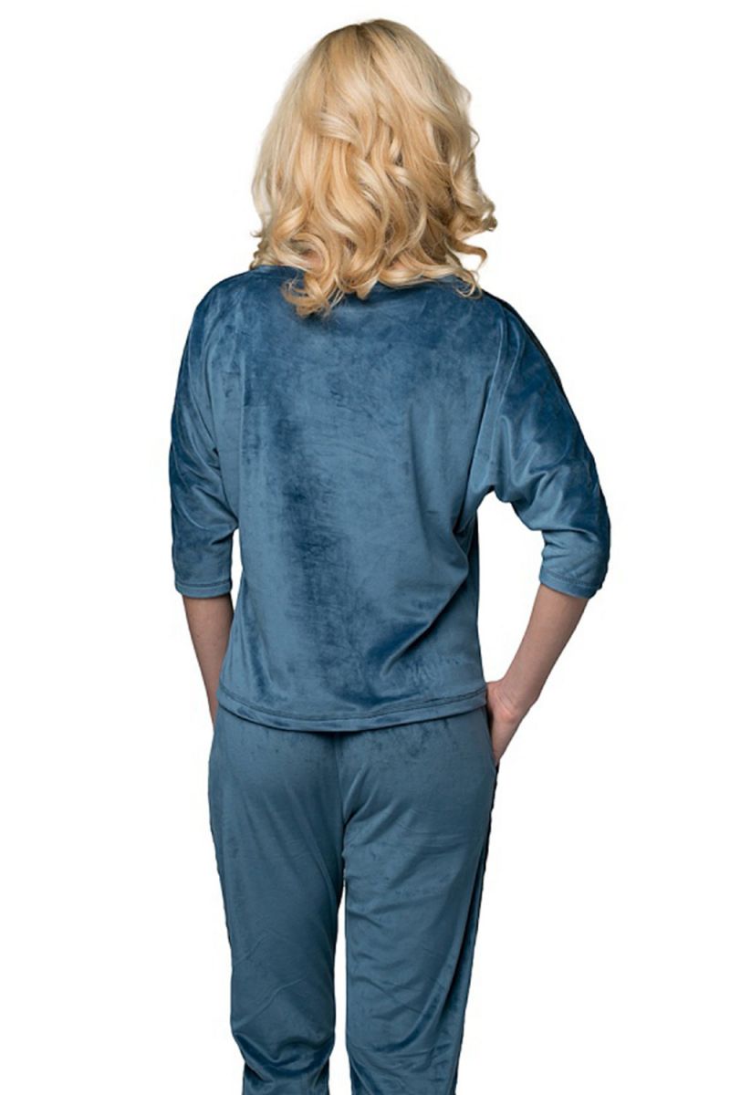- Элегантный декор. Пайетки на горловине, рукавах и по бокам брюк делают костюм особенным, превращая домашнюю одежду в предмет гардероба, в котором не стыдно встретить нежданных гостей.