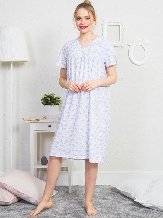 Сорочка станет отличным решением для дома, отдыха и сна. Её можно использовать как повседневную домашнюю одежду или как лёгкую ночную рубашку. Голубой цвет в сочетании с нежным цветочным принтом легко вписывается в домашний гардероб и сохраняет аккуратный вид даже при регулярной носке.