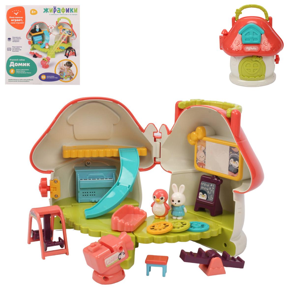 Игровой набор «Живафики»: домик для кукол с пианино, проектором, горкой, 13 аксессуаров, из прочного пластика