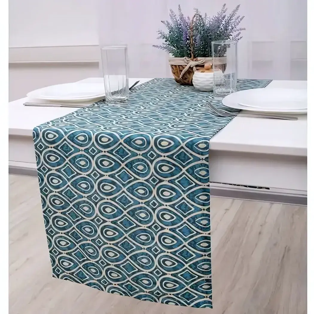 Создайте уют и стиль в вашем доме с помощью декоративной дорожки «Радушная хозяйка». Эта дорожка не только украсит ваш стол, но и защитит его от загрязнений, что делает её идеальным выбором для повседневного использования и праздничных мероприятий. Светлые расцветки и геометрический узор в голубых и белых тонах прекрасно впишутся в любой интерьер, добавляя нотку элегантности и комфорта.
