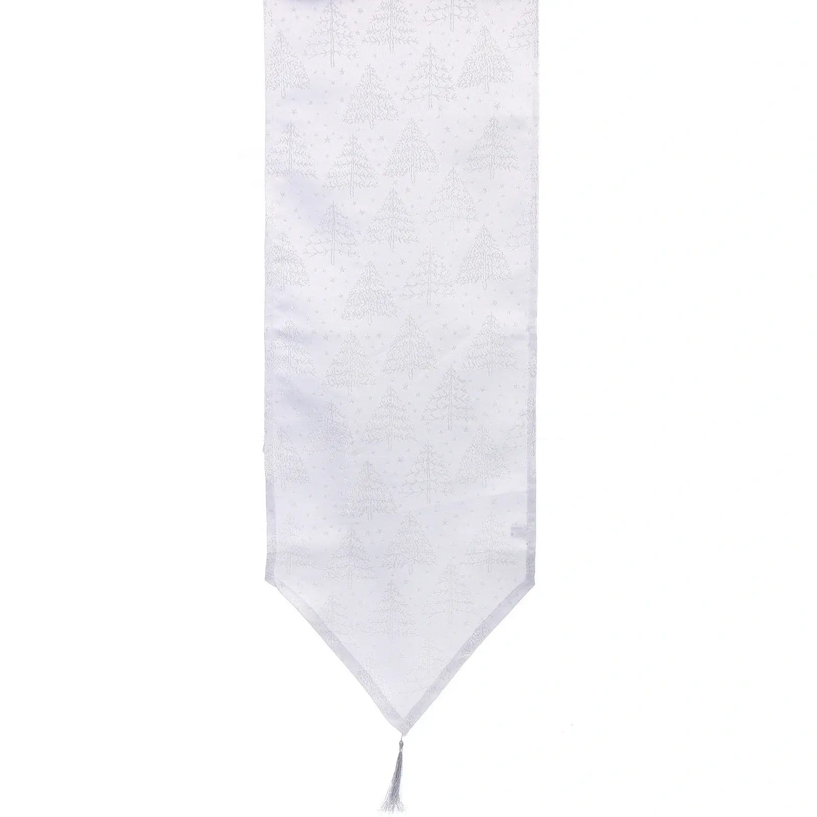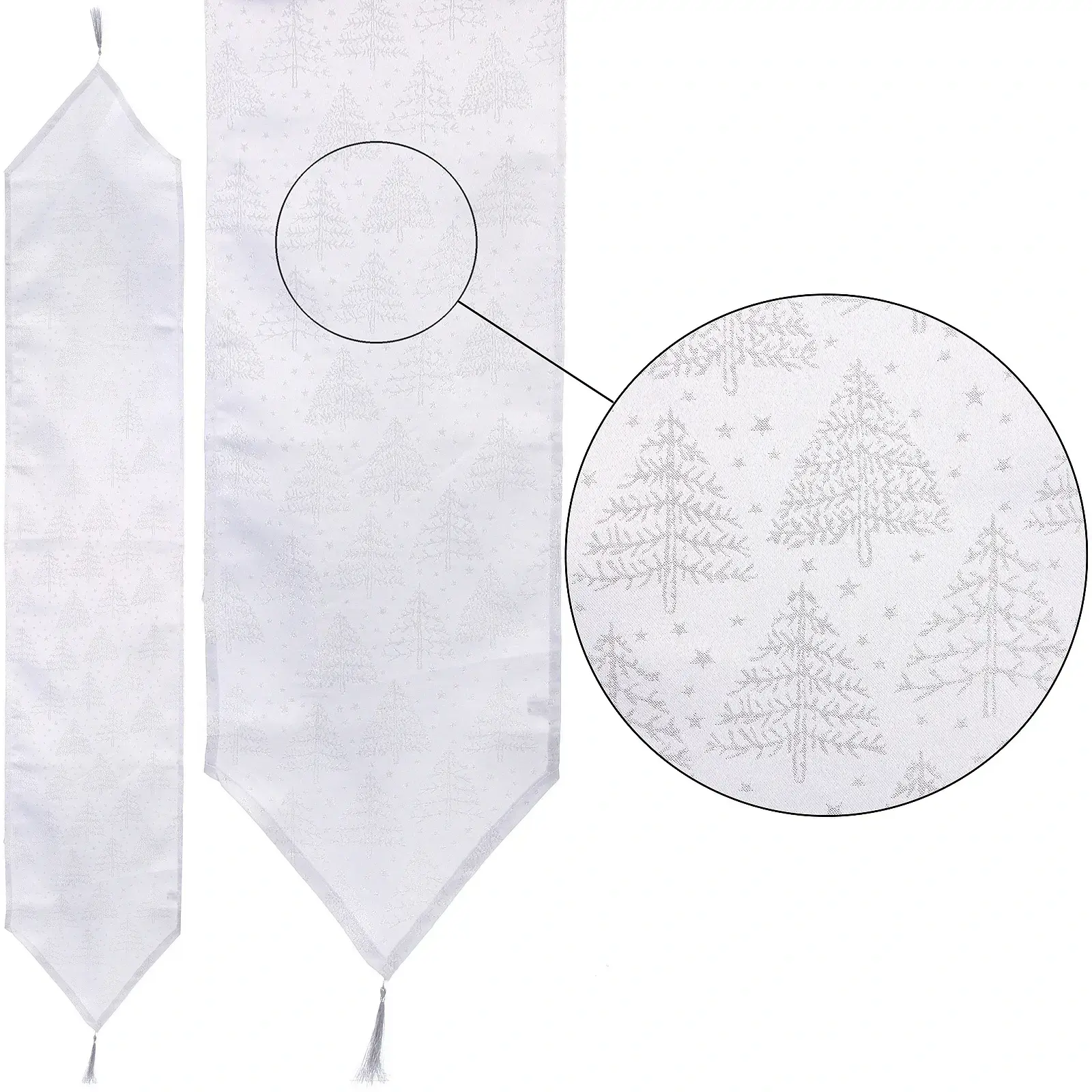 Создайте праздничное настроение в доме с декоративной дорожкой на стол размером 33x180 см. Белоснежная основа и утончённый серебристый узор в виде ёлочек и звёзд добавят блеска и изысканности вашему интерьеру. Этот аксессуар станет эффектным акцентом при сервировке новогоднего или зимнего стола, создавая атмосферу уюта и торжества.