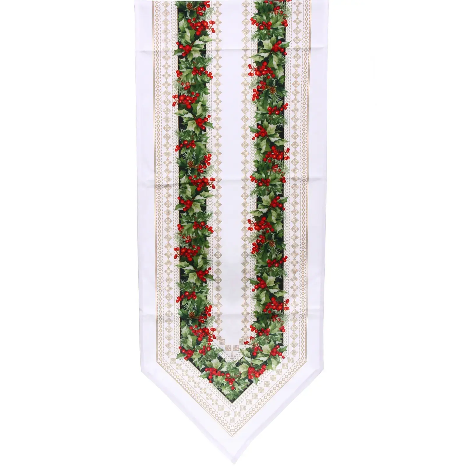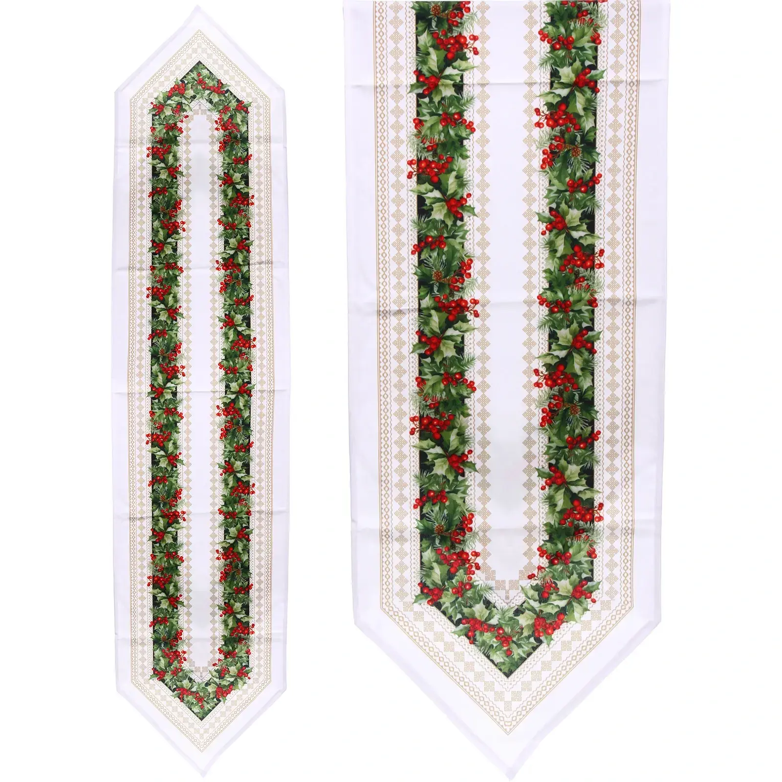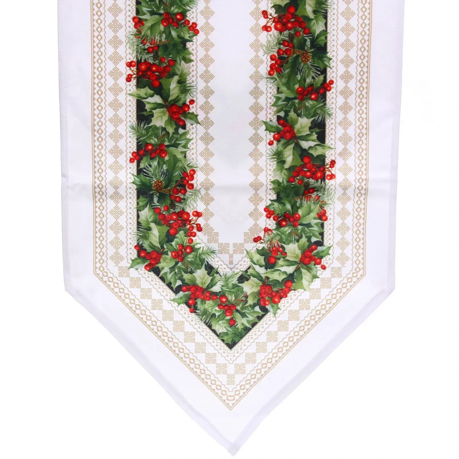 - Цвет: белый фон с зелёными листочками и красными ягодами