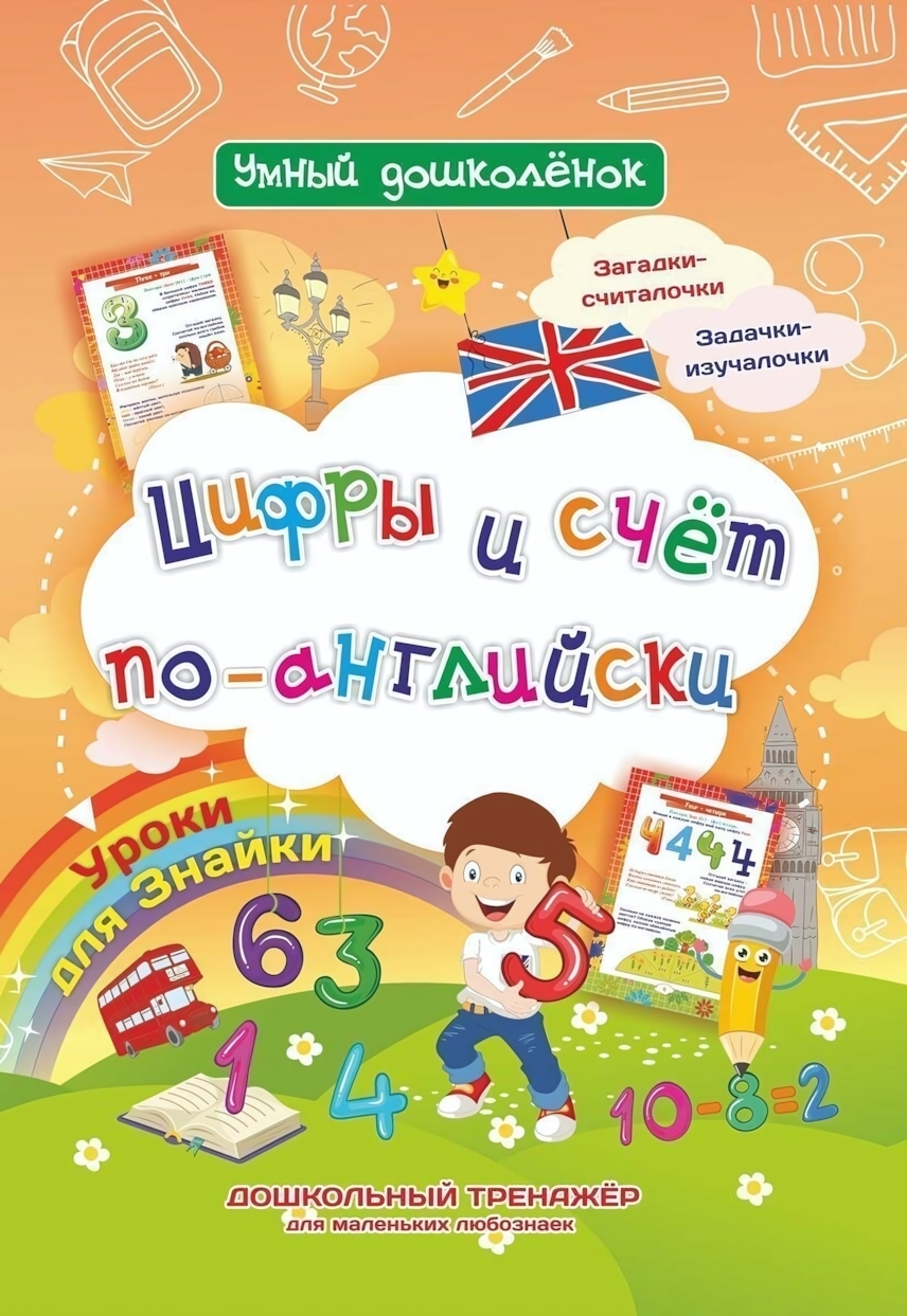 Дошкольный тренажер 'Уроки для Знайки', цифры и счет по-английски, с заданиями и загадками