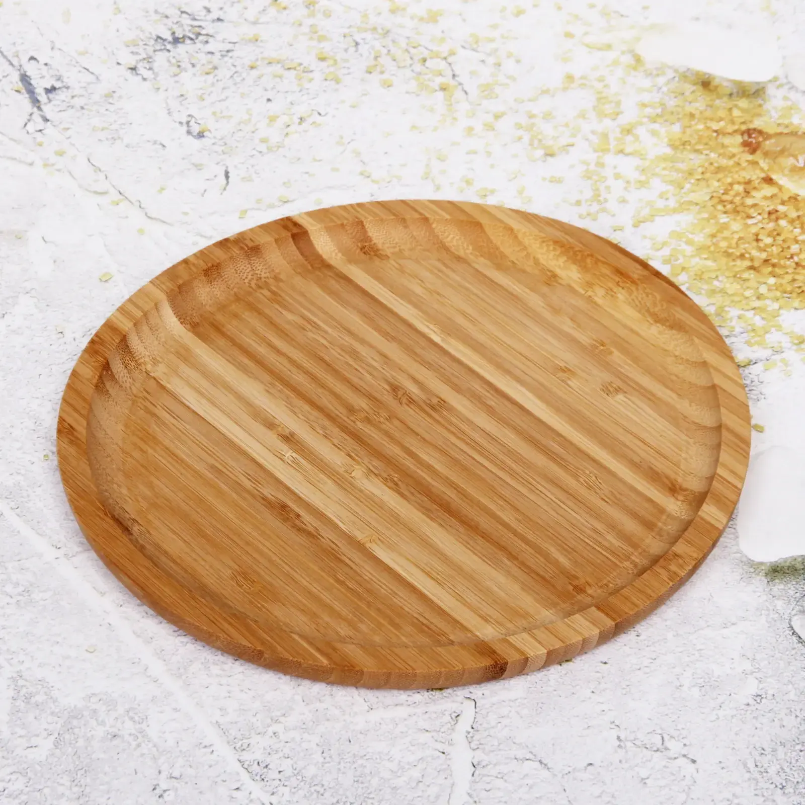 Круглая форма диаметром 25 см оптимальна для большинства блюд. Гладкая поверхность с естественной текстурой подчеркивает натуральность, а скругленные края предотвращают скатывание продуктов. Толщина 1.5 см обеспечивает устойчивость даже при сервировке тяжелых блюд.
