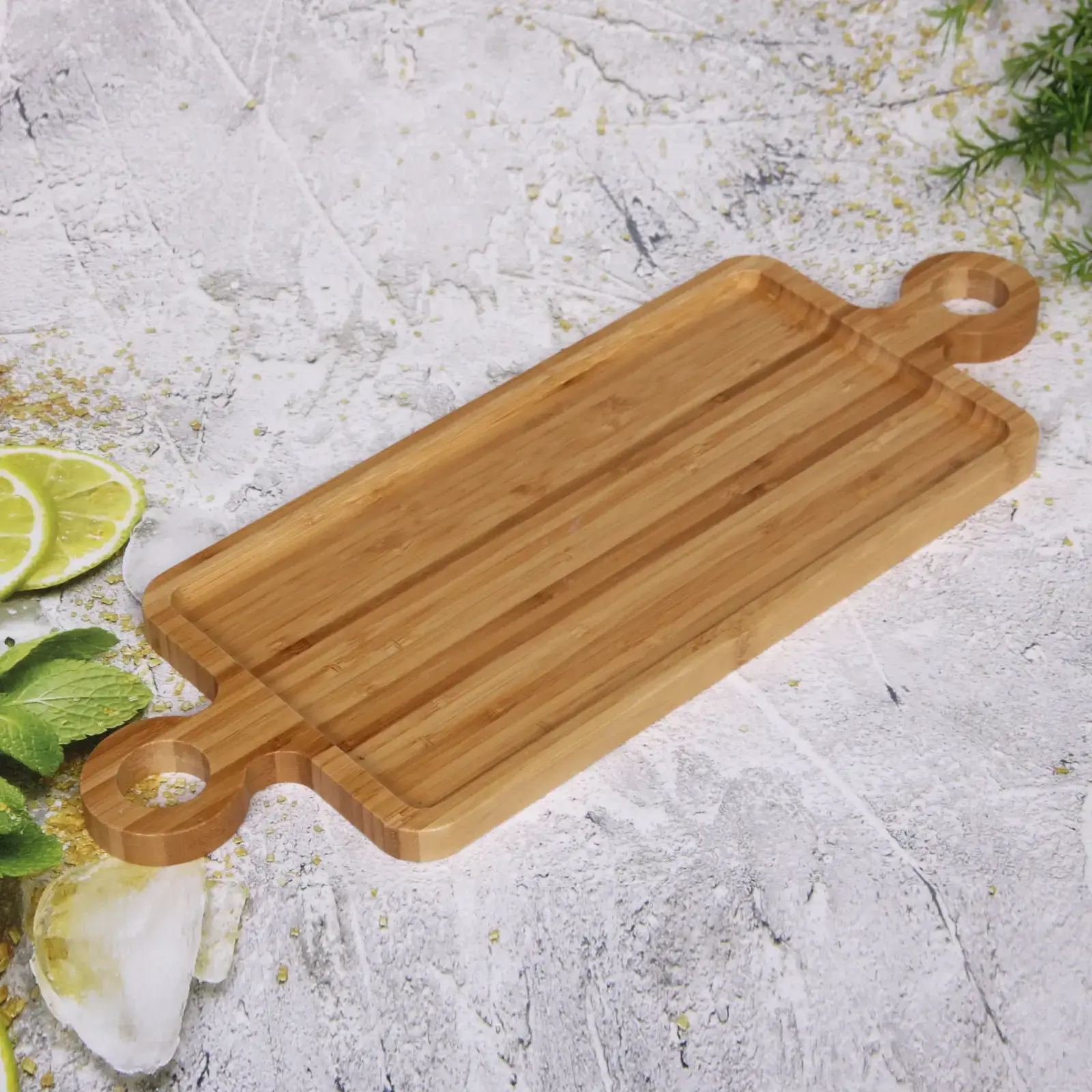 Эта доска идеально подходит как для домашнего использования, так и для профессиональных кухонь. С её помощью вы сможете легко нарезать продукты, а также красиво сервировать блюда для гостей. Две удобные ручки по бокам обеспечивают легкость в переноске, а закругленные углы делают её безопасной в использовании.