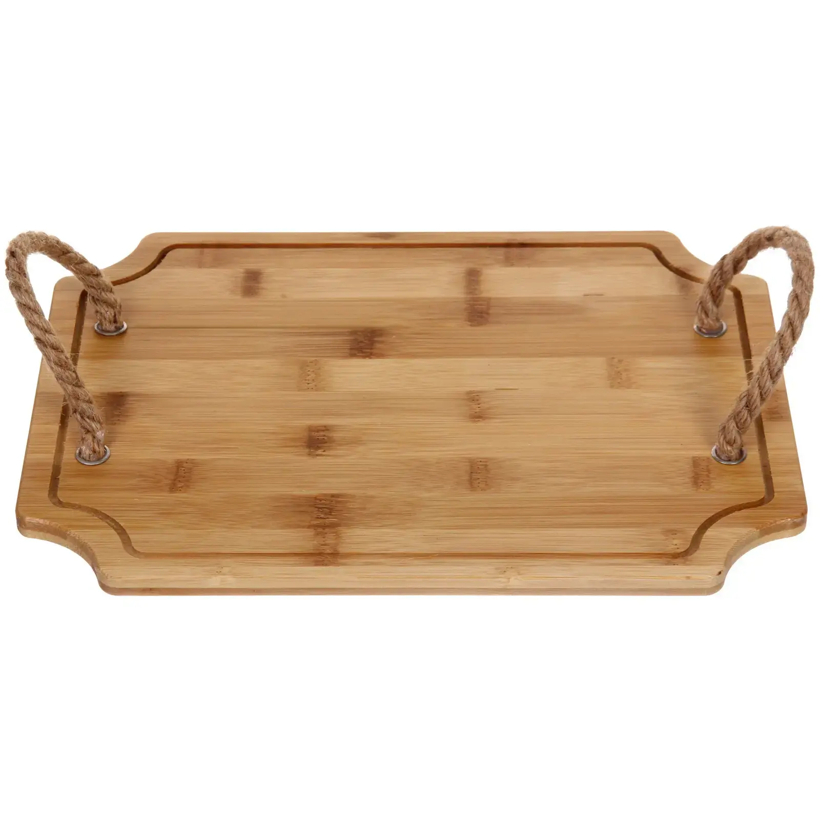 Доска предназначена для использования в домашних условиях, идеально подходит для сервировки на праздниках или семейных ужинах. Удобные ручки из веревки позволяют легко переносить доску, что делает её практичной для использования как на кухне, так и за её пределами. Вы можете использовать её для подачи блюд на стол или как поднос для закусок на пикнике.