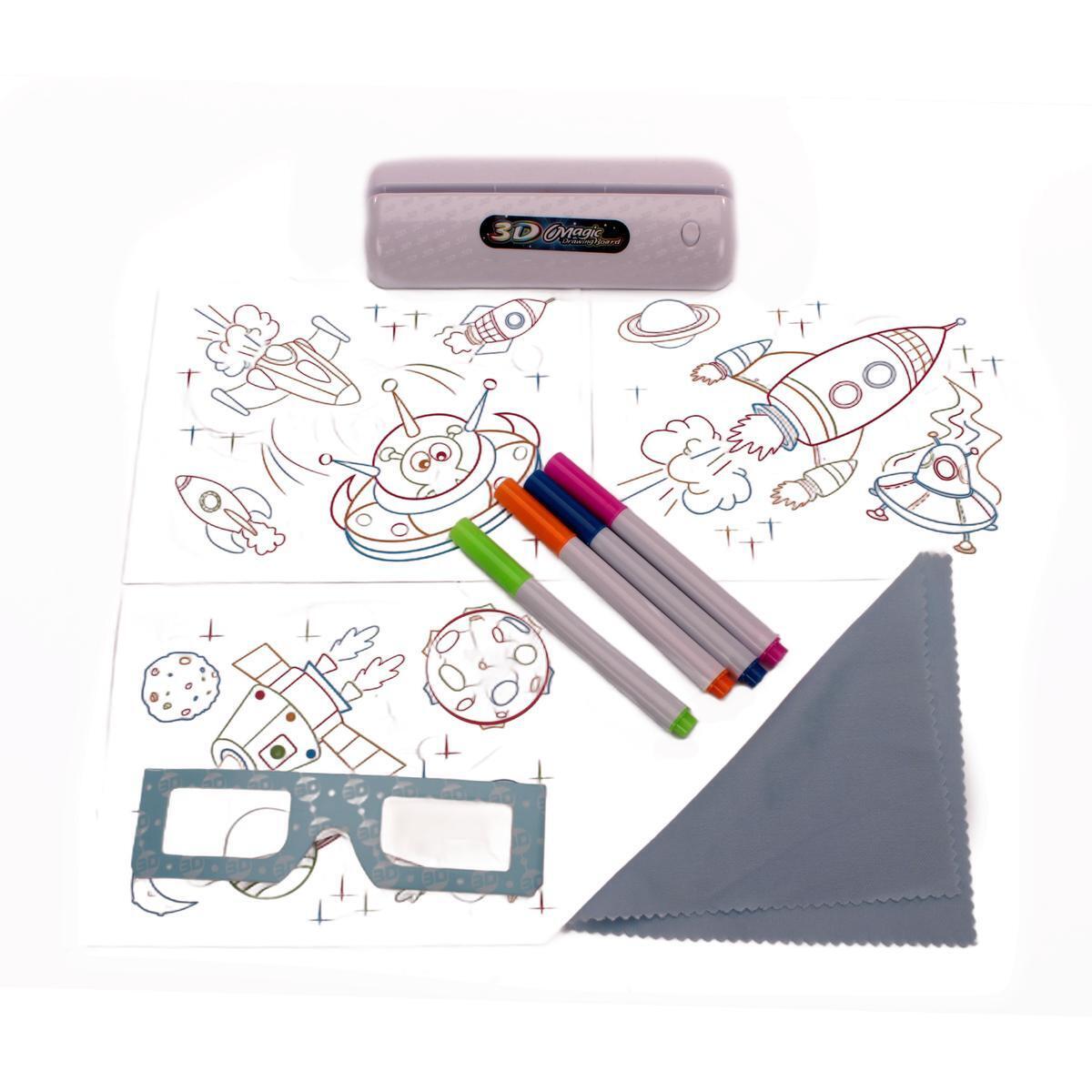 Доска для рисования 3D "Magic Drawing Board", с маркерами и 3D очками, развивающая, 29.2 x 4.2 x 18.4 см