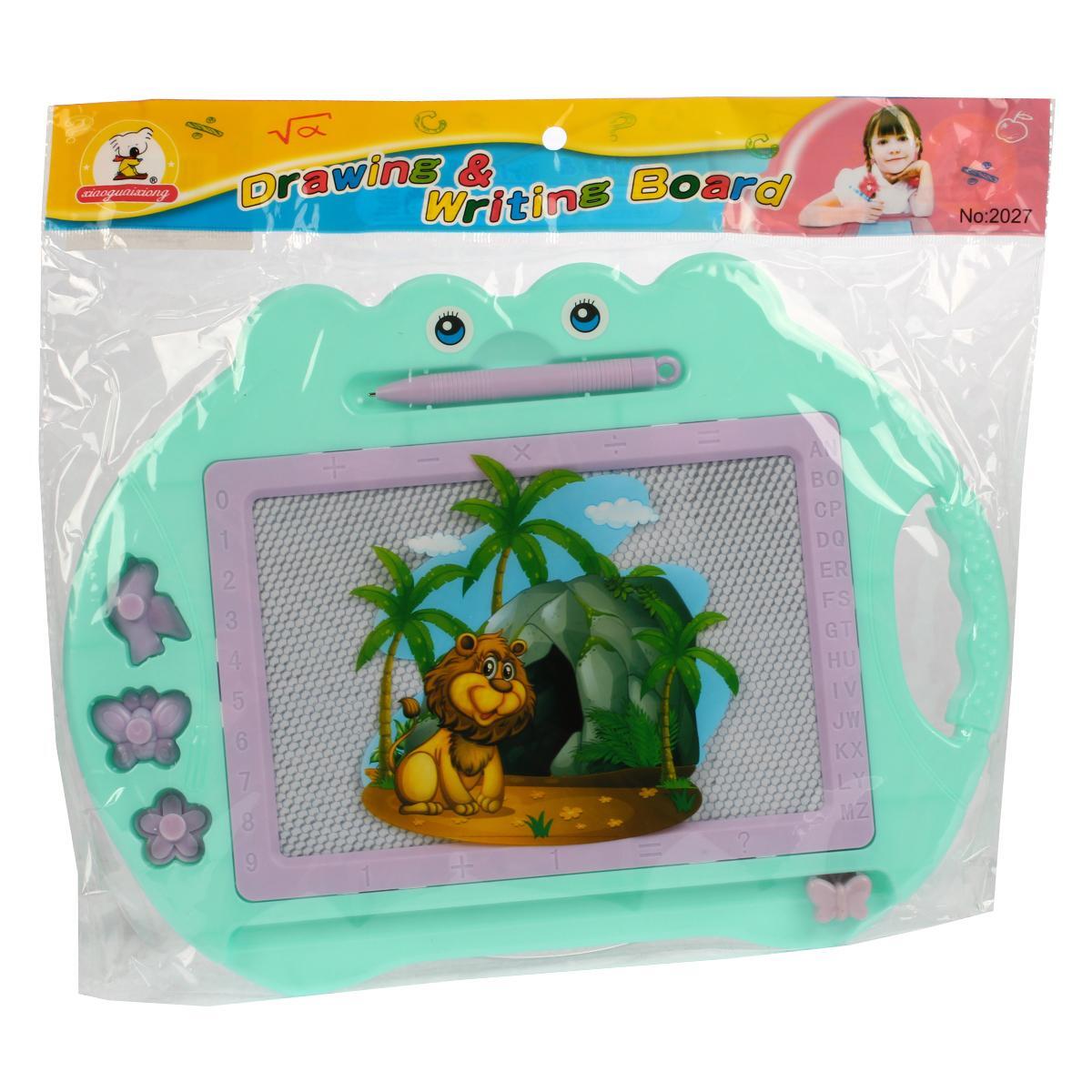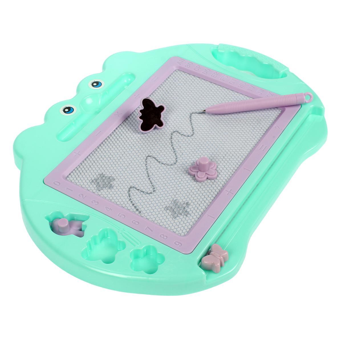Доска для рисования с магнитной крошкой, обучающая, 31х23х2,2 см, бирюзовый с сиреневым, стилус и трафареты