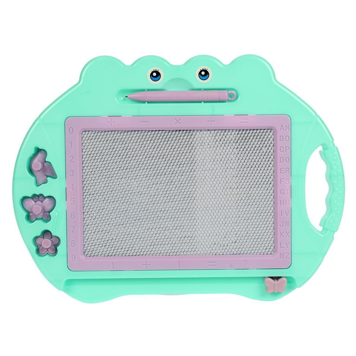 Яркая доска с магнитной крошкой развивает мелкую моторику, учит буквам и цифрам в игровой форме. Идеальный спутник для путешествий — компактный размер и лёгкий вес поместятся даже в детский рюкзак.