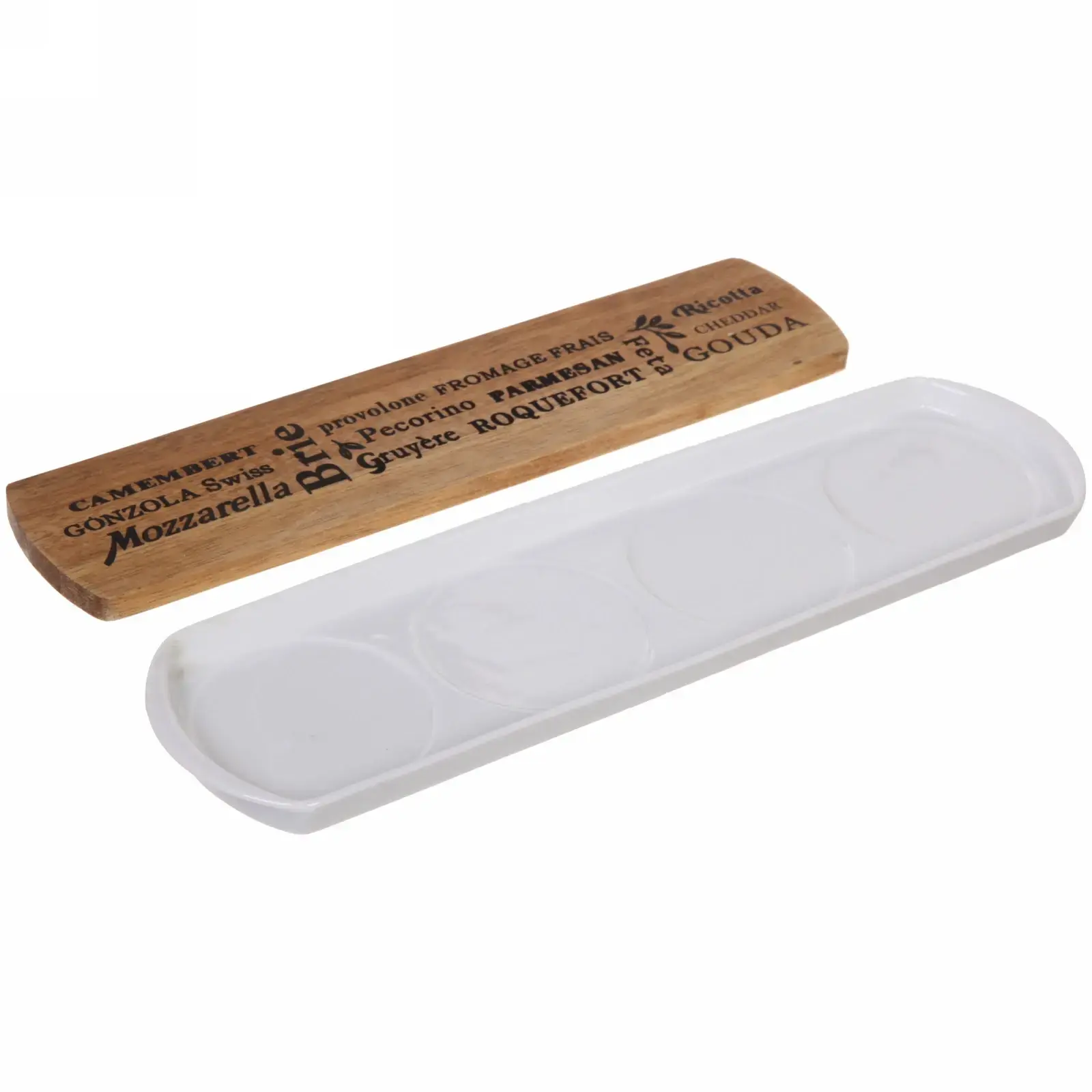 Деревянная доска с подставкой превратит обычную нарезку в эстетичный кулинарный шедевр. Надписи популярных сортов сыра на поверхности подчеркнут ваше внимание к деталям и создадут атмосферу профессиональной дегустации.