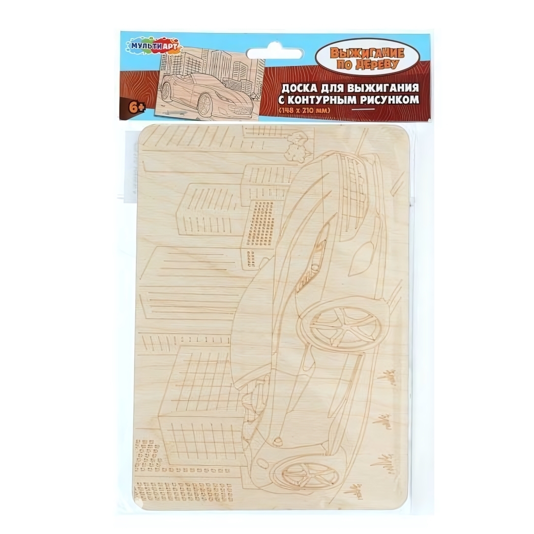 Доска предназначена для детей старше 6 лет и идеально подходит для занятий творчеством. Ребенок сможет выжигать контурный рисунок спортивного автомобиля, что не только развивает внимание и усидчивость, но и способствует формированию творческого мышления и моторики рук. Занятия с этой доской помогут вашему ребенку развить сенсорное и цветовое восприятие, а также воображение.