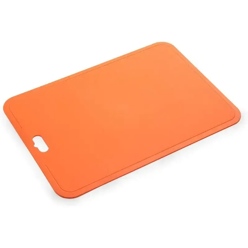 Компактные размеры позволяют хранить доску даже в небольшом пространстве. Яркий оранжевый цвет (мандарин) создает позитивное настроение во время готовки. Рекомендуем для нарезки овощей, фруктов, хлеба и сыров.