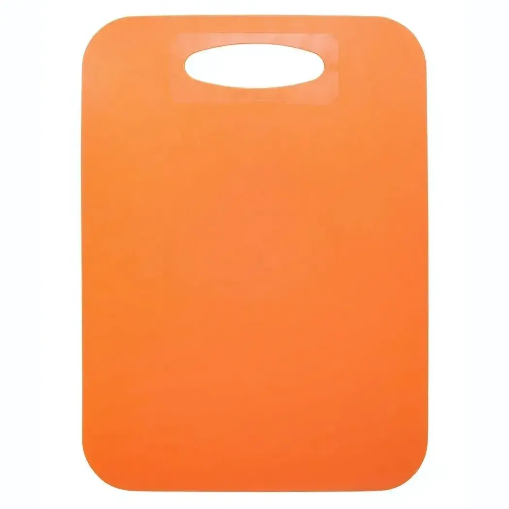 Практичное решение для приготовления и сервировки: пластиковая доска сочетает функциональность и комфорт. Её гибкая поверхность упрощает пересыпание ингредиентов, а увеличенный размер подходит для работы с тестом и нарезки крупных продуктов.