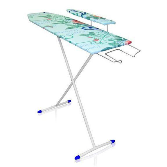 Размеры столешницы позволяют гладить длинную одежду, а переносной подрукавник делает процесс глажения еще более удобным. Доска имеет стильный дизайн с цветочным узором на светло-голубом фоне, что добавляет эстетики в ваш интерьер. Гладильная доска Ника 'Лина 2' — это сочетание качества, удобства и практичности, которое удовлетворит даже самых требовательных пользователей.