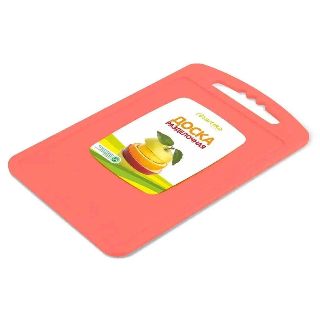 Яркая коралловая поверхность с фруктовым дизайном создает настроение на вашей кухне. Легкая и гигиеничная пластиковая доска с удобным отверстием для подвешивания экономит пространство и сохраняет порядок.