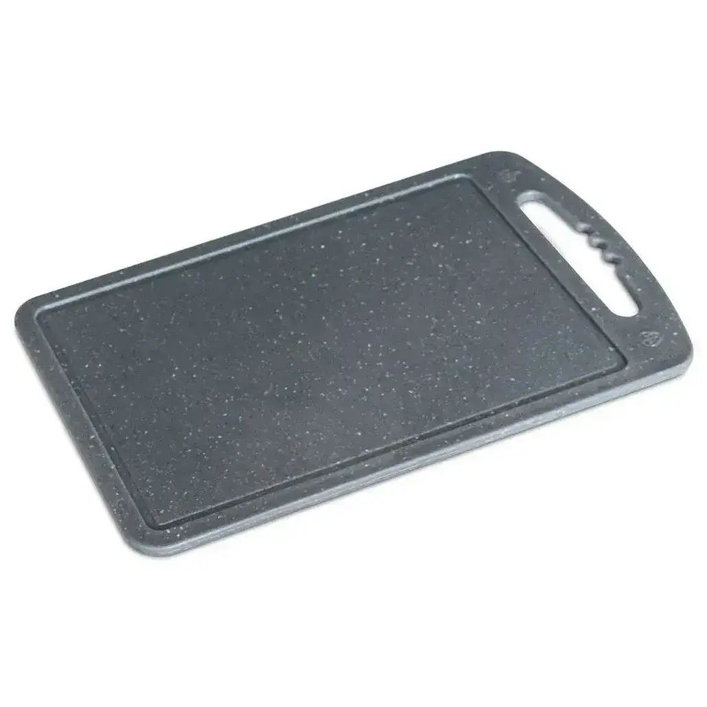 Прямоугольная форма 18 см оптимальна для нарезки овощей, мяса и хлеба. Специальное покрытие с эффектом «серый камень» устойчиво к царапинам и сохраняет презентабельный вид даже при интенсивном использовании.