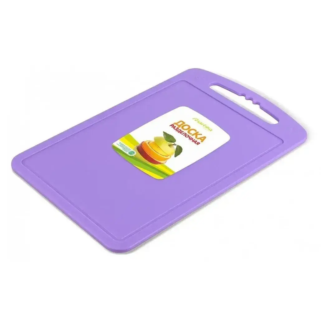 Разделочная доска пластиковая 20x32см с ручкой, углублением для сока, цвет фиолетовый С53ФИЛ