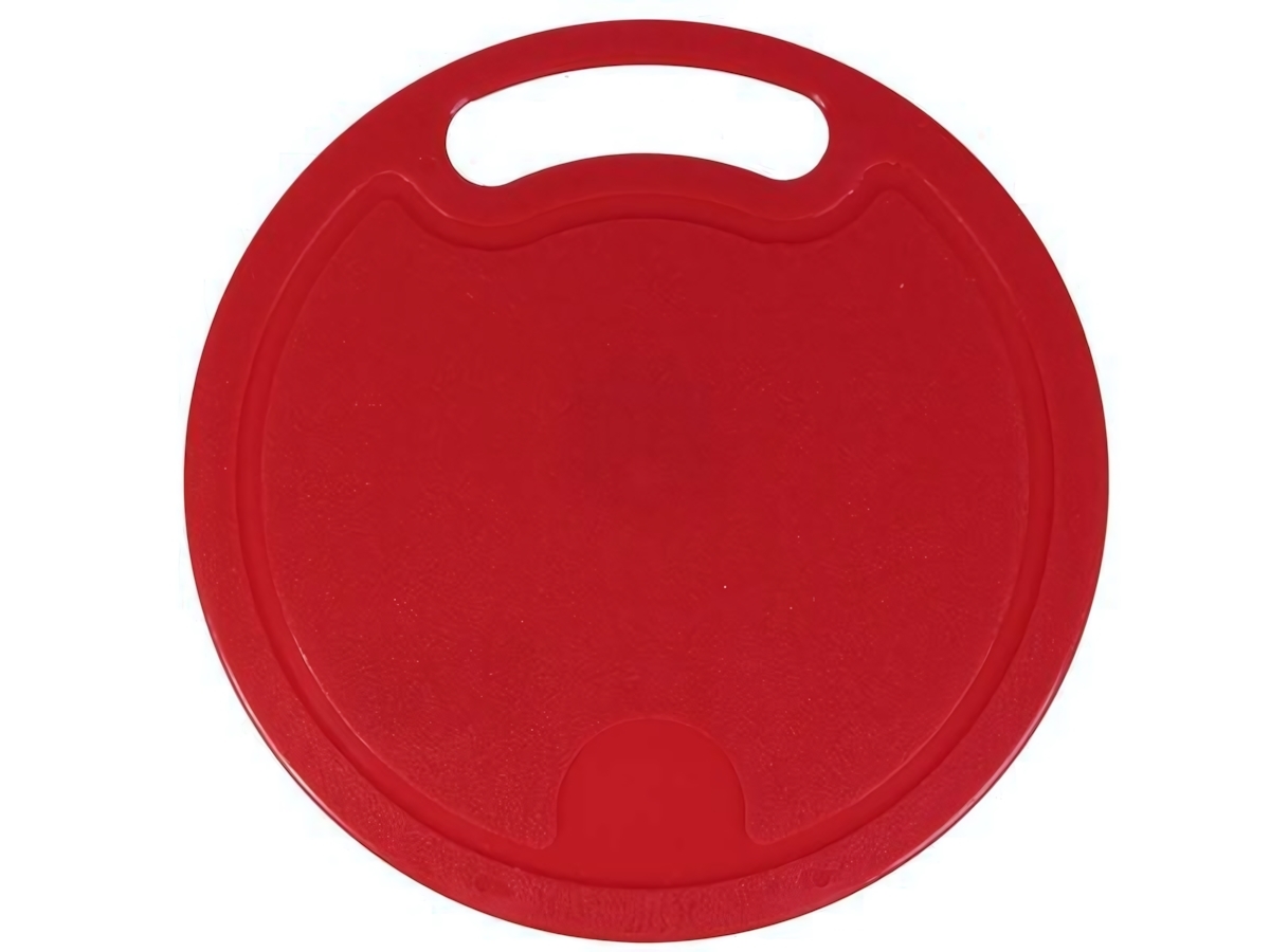 Доска разделочная круглая пластиковая 24.5см, красная, с ручкой для удобства