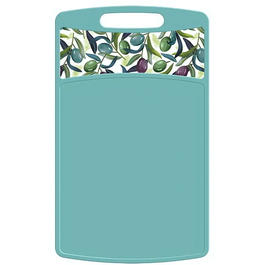 Эта стильная и практичная доска разделочная сделает процесс приготовления еды быстрее и приятнее. Благодаря своему мятно-зеленому цвету и оригинальному декору с изображением оливок, она не только функциональна, но и станет ярким акцентом на вашей кухне. Доска изготовлена из 100% перерабатываемого полипропилена, что гарантирует ее безопасность и долговечность.