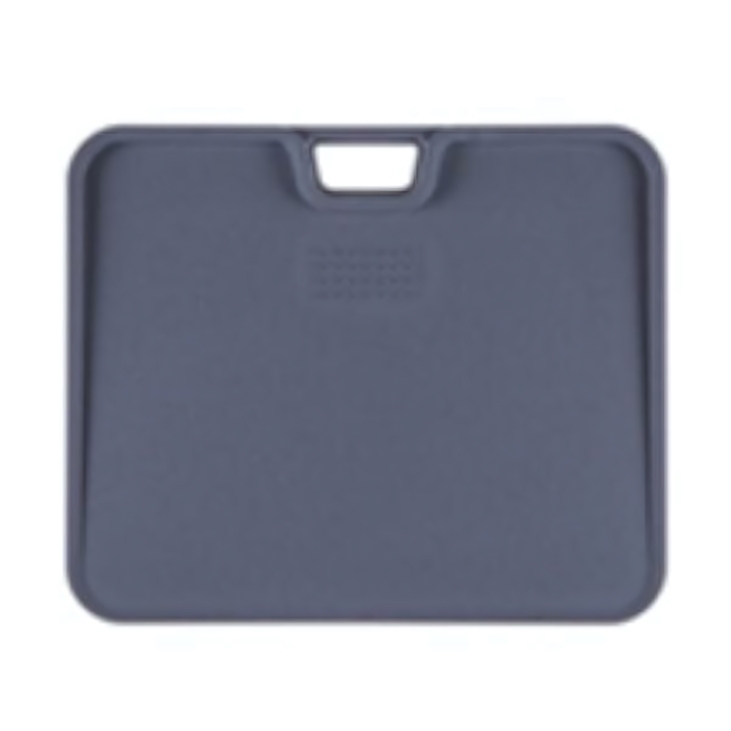 Доска обладает оптимальными размерами 28х34 см, что обеспечивает достаточное рабочее пространство для нарезки. Особенностью модели является наличие специального бортика по всему периметру, который эффективно удерживает сок от продуктов и крошки, предотвращая загрязнение кухонной столешницы. Продуманная форма со скругленными углами делает эксплуатацию безопасной, а серо-синий матовый цвет придает изделию стильный вид, который отлично дополнит интерьер современной кухни.