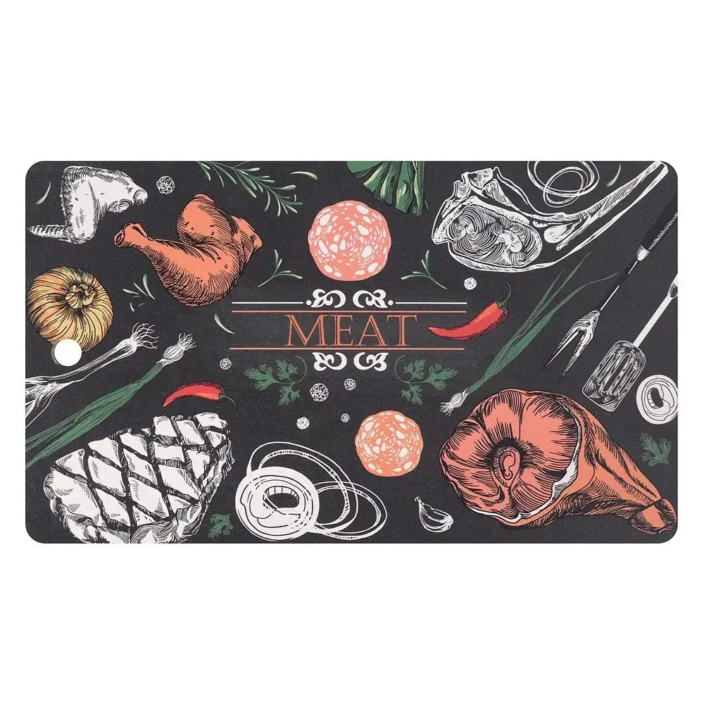 - Яркий дизайн с изображением мясных продуктов создает аппетитное настроение