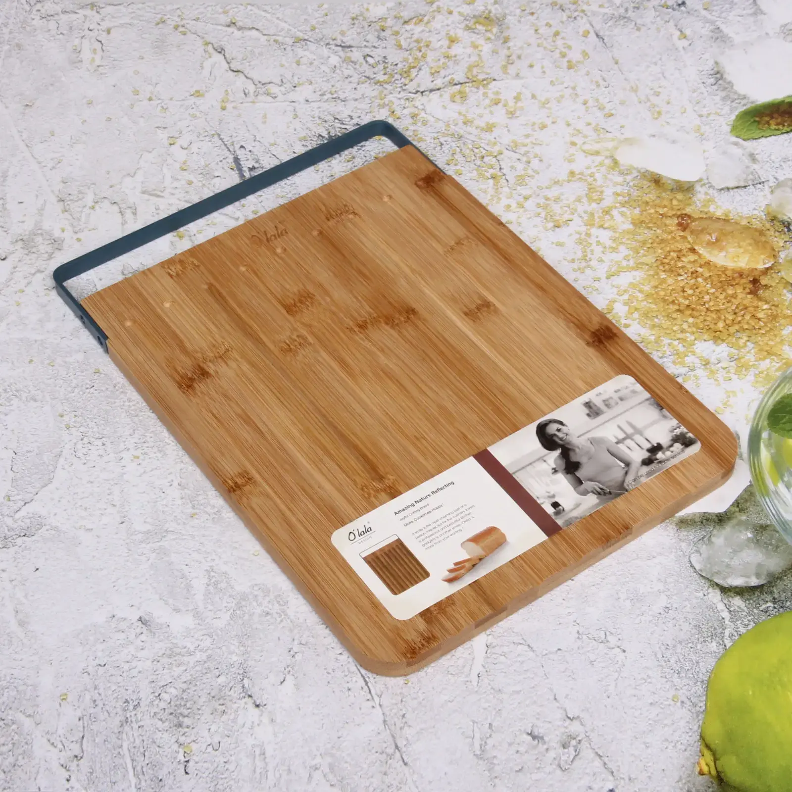 Бамбуковая разделочная доска «O'lala» сочетает экологичность и функциональность. Удобная металлическая ручка и продуманная конструкция с бороздками для сока сделают процесс готовки аккуратным и гигиеничным.