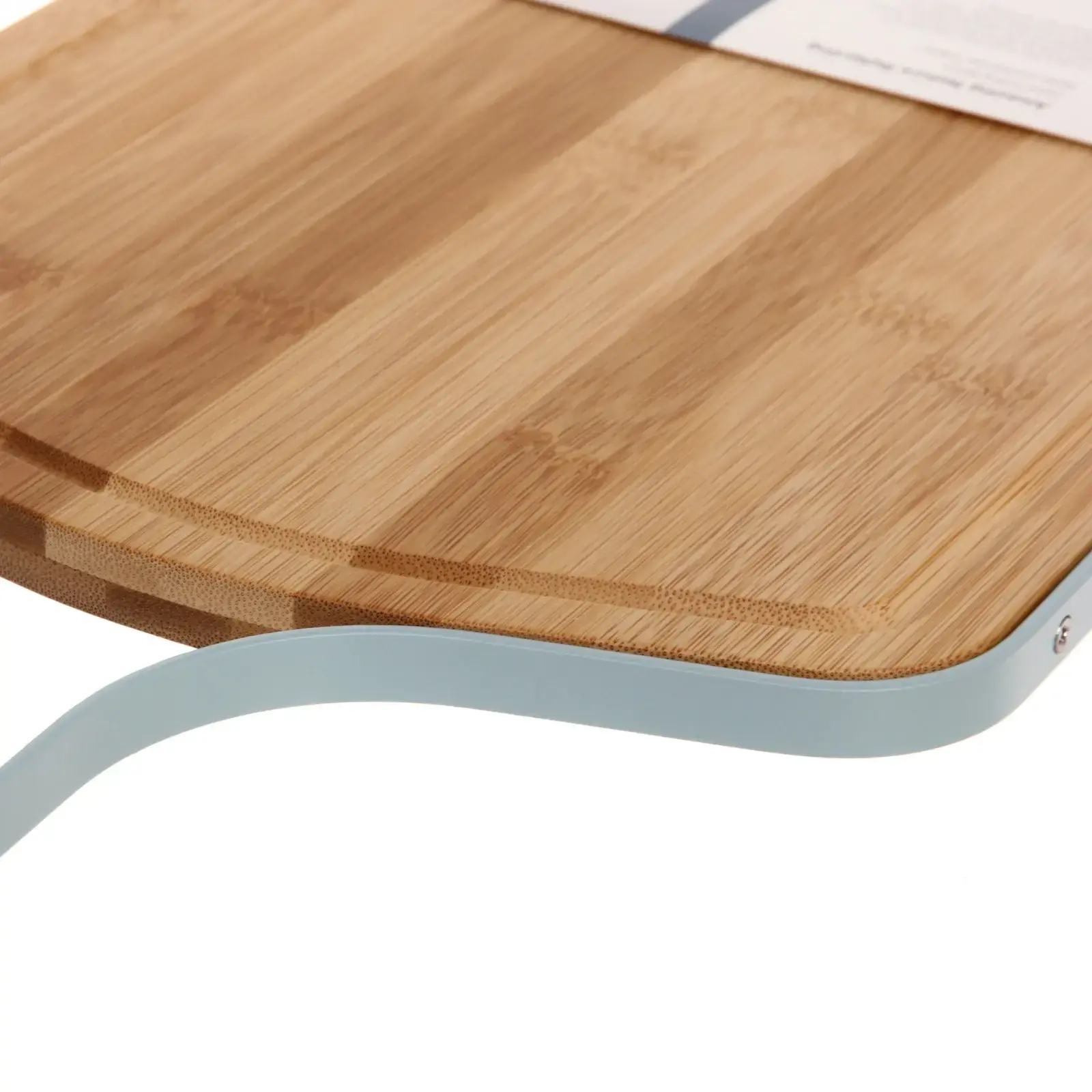 Прямоугольная форма 51,8х24,8 см оптимальна для работы с крупными продуктами. Натуральная текстура бамбука гармонично впишется в любой кухонный интерьер, а голубая металлическая фурнитура добавит стильный акцент.